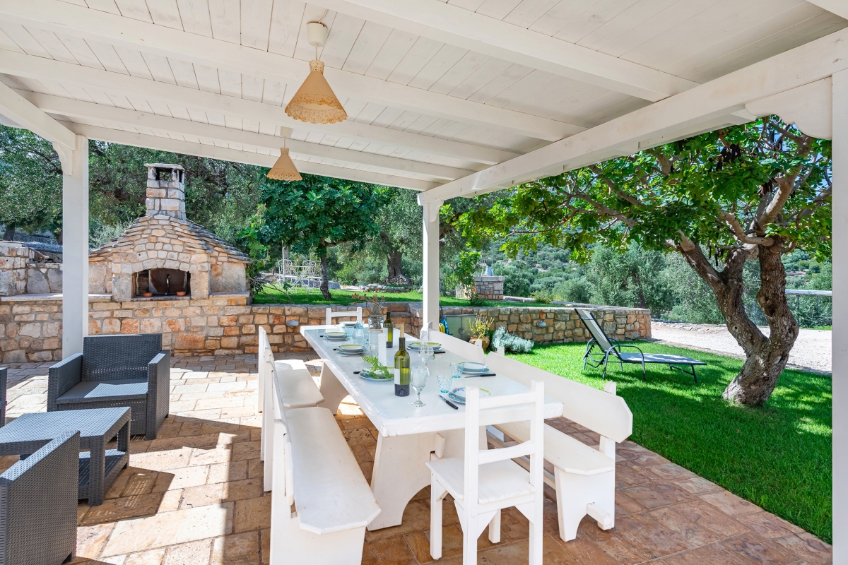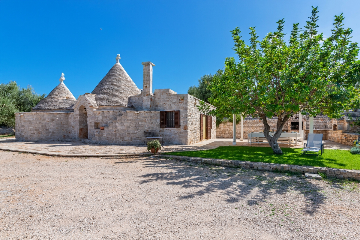 Step outside in a private garden featuring an outdoor dining area, BBQ facilities, and a terrace, ideal for enjoying the beautiful Italian weather. Surrounded by lush greenery and modern comforts this trullo is perfect for a tranquil escape.