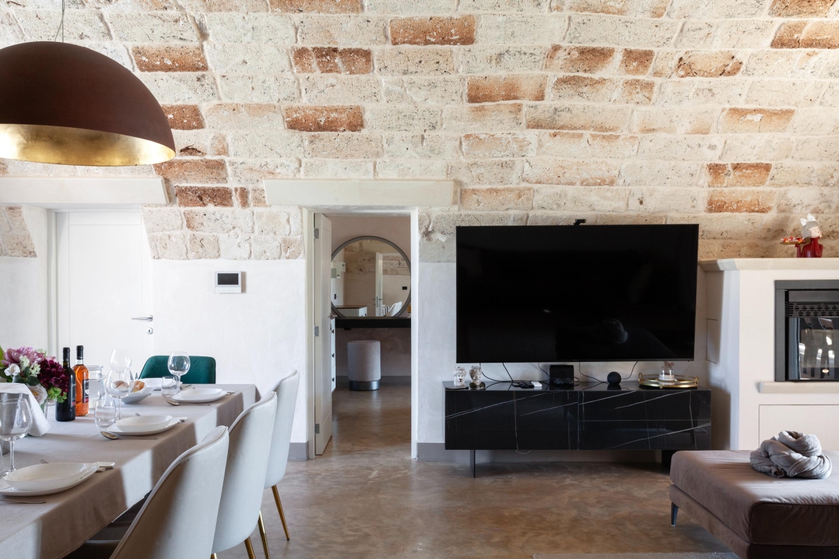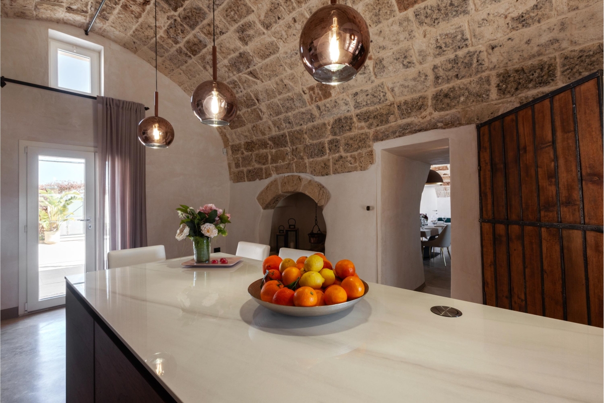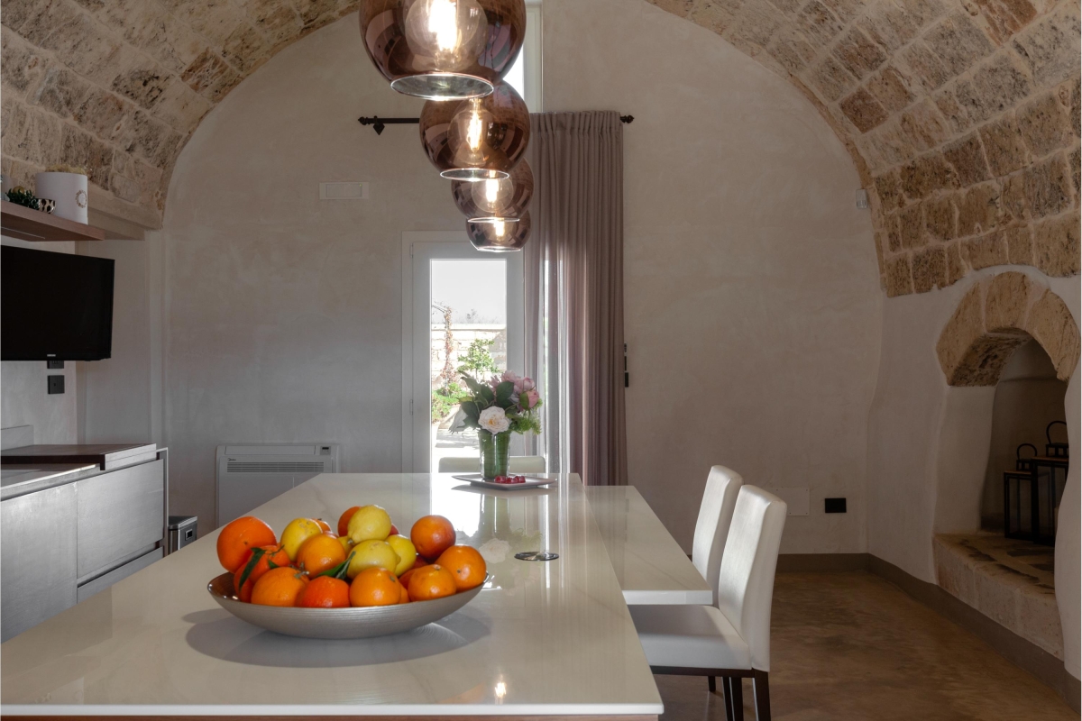 Hidden away from the outside world, on the edge of the charming town of Calimera, this traditional house has been carefully restored. The interiors are a wonderful combination of ancient stonework, vaulted ceilings and contemporary furniture.