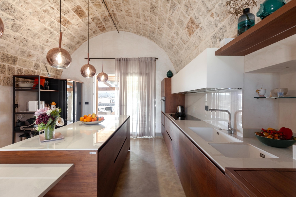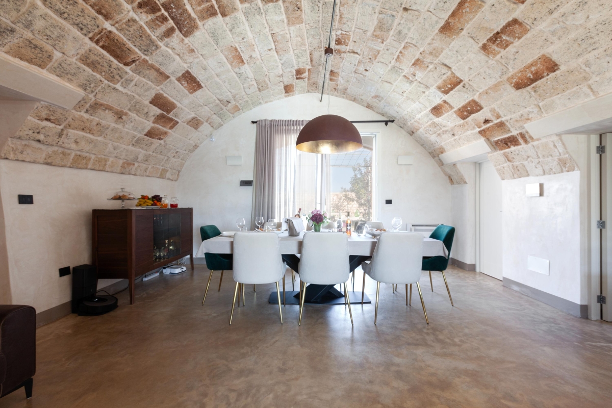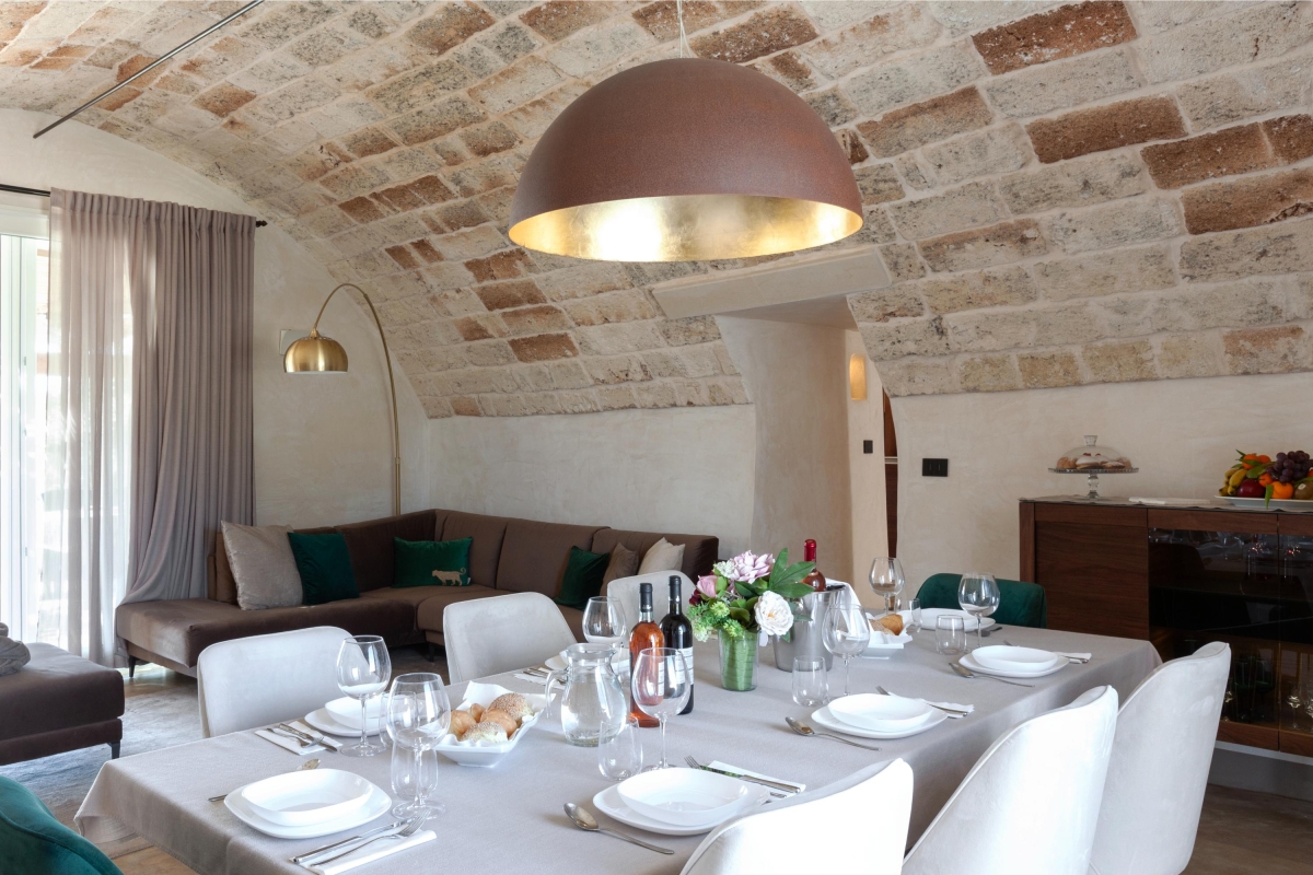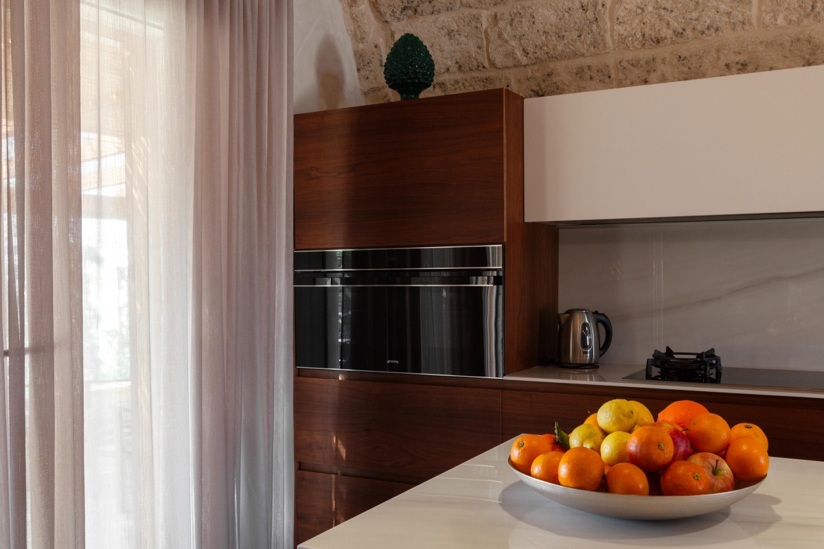 Hidden away from the outside world, on the edge of the charming town of Calimera, this traditional house has been carefully restored. The interiors are a wonderful combination of ancient stonework, vaulted ceilings and contemporary furniture.