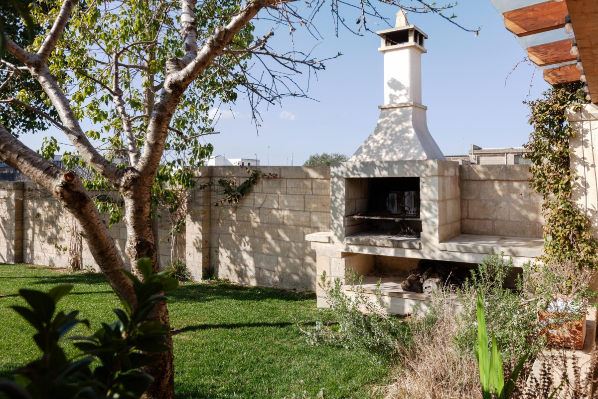 The outside spaces have been as carefully created as the interiors. At the rear of the house, there is a shaded veranda with, armchairs and café-style tables and chairs looking out over a green lawn. There is also a stone BBQ. At the front, there is an attractive open courtyard.