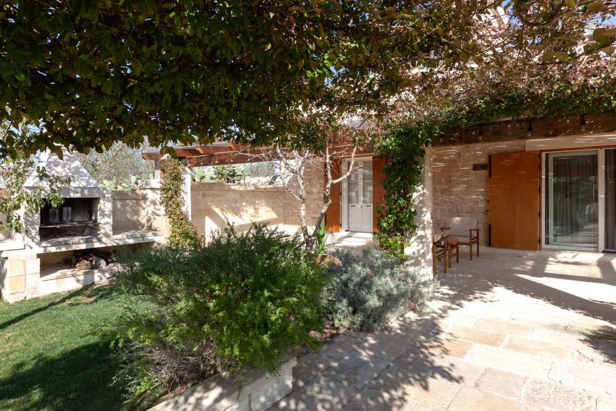The property is on the edge of Calimera, surrounded by olive groves and vineyards. The town’s historical centre is a 4-minute drive or 30-minute walk. Here you will find the traditional white houses as well as palaces and beautiful churches. For self-catering, the town’s weekly market takes place on Thursday and is the best place to pick up the freshest local ingredients to cook at home. Alternatively, there is a supermarket just 7 minutes away on foot.