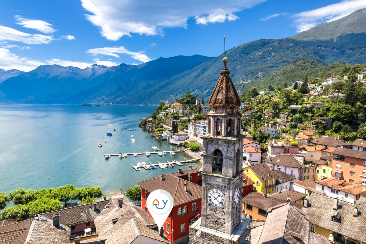 The property is located within a historic courtyard in the Swiss town of Ascona, 50 metres from the northern shore of Lake Maggiore. Lungolago di Ascona, the town’s picturesque lakeside promenade is just a 2-minute walk away with its colourful buildings, palm trees, lively cafes, boutiques and grocery stores.