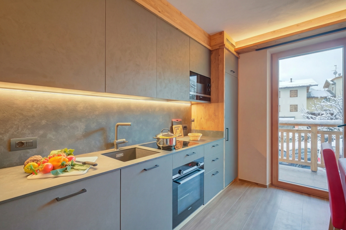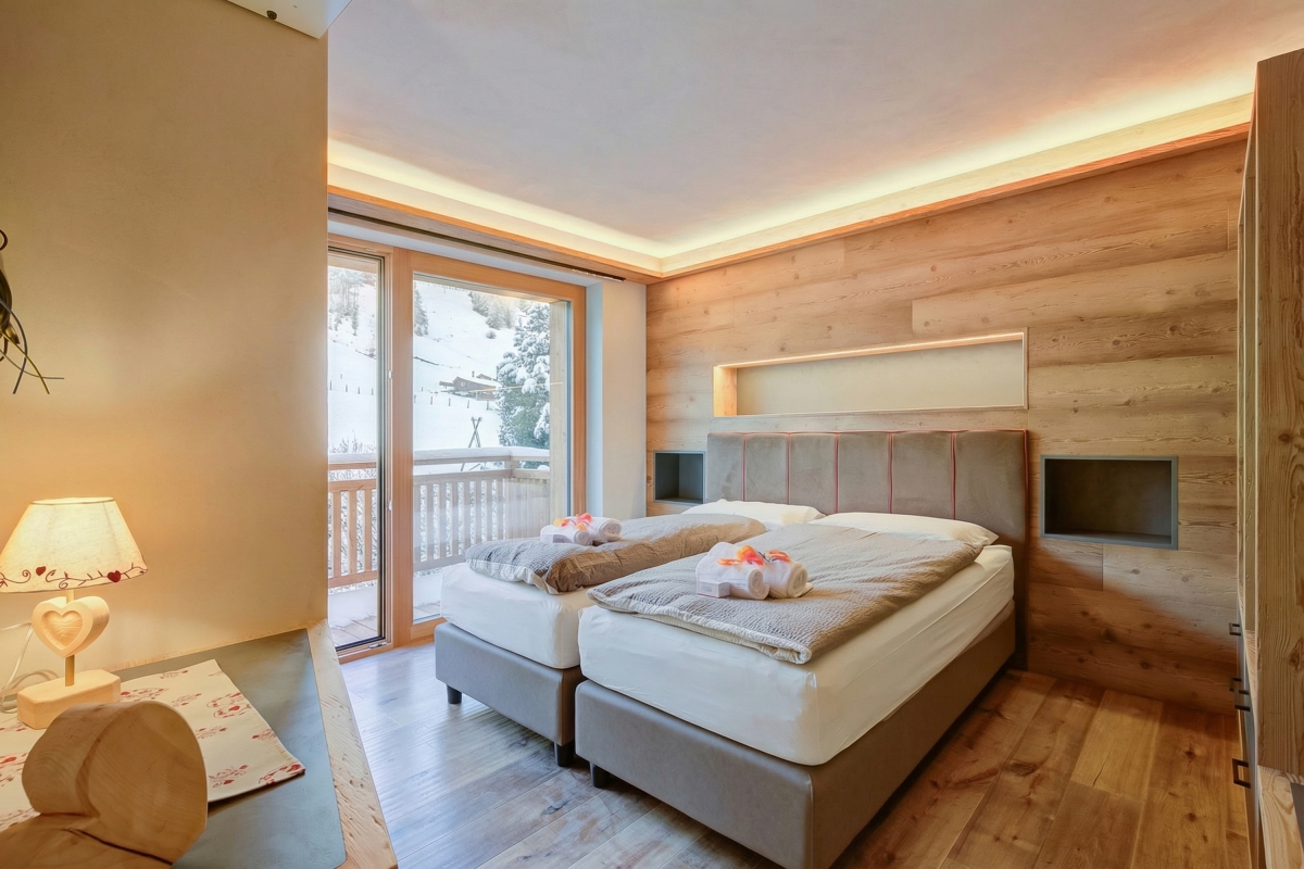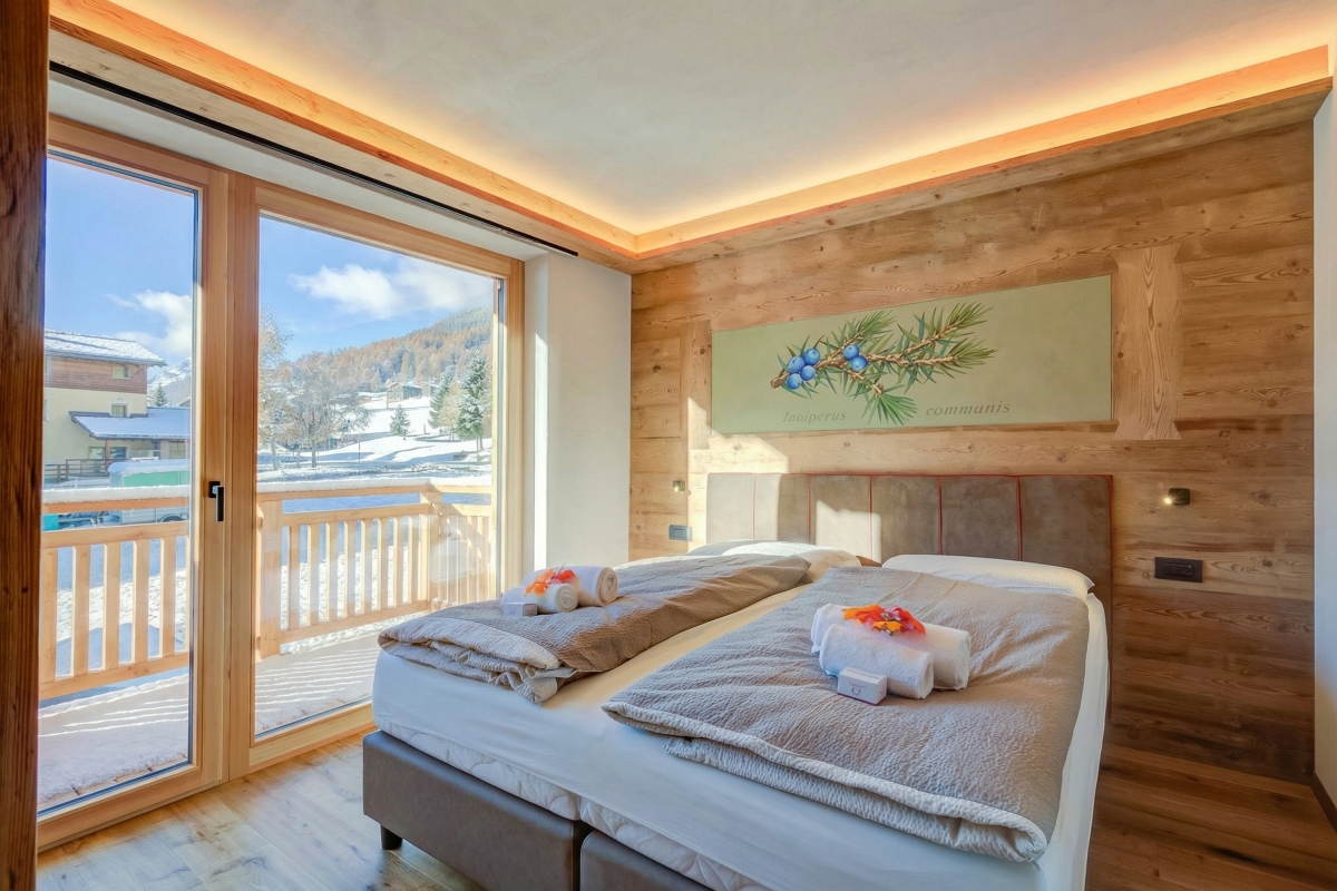Escape in beautiful mountain landscapes and relax in this stylish yet cosy apartment for 4. On the first floor of a charming chalet-style residence, New Ginepro Ski is one of 4 apartments in this modern building. It is close to the ski slopes so guests can ski in and out. In the summer months, there are hiking and cycling routes on your doorstep. It is an ideal holiday option at any time of year.