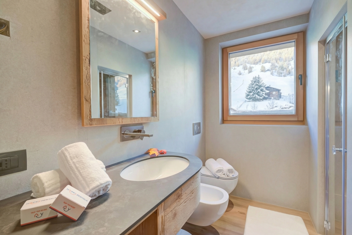 The apartment has 2 bathrooms. Each is well-appointed with a shower, plus a basin, bidet and WC. There is also a Turkish steam room in one of the bathrooms, ideal for relaxing post a day in the mountains.