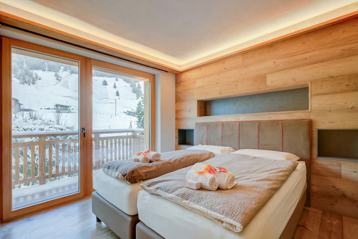 • Free Wifi • Private balconies • Shared garden • Satellite TV • Underfloor heating • Private Turkish bath • Private garage parking, car not necessary • EV charger • Hair dryer • Washing machine • Security safe • Child friendly • Suitable for elderly • Lift • Ski storage • Ski boot heater • Ski in or out • Close to ski shuttle bus • Bike storage