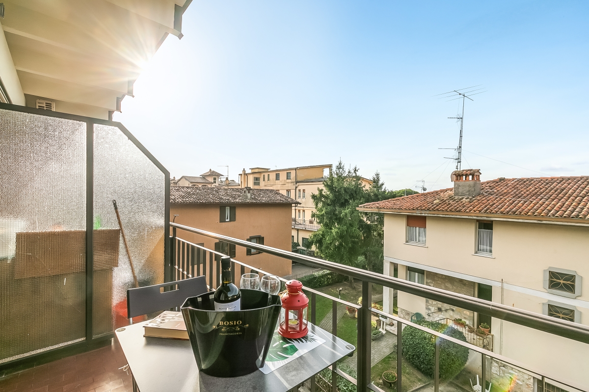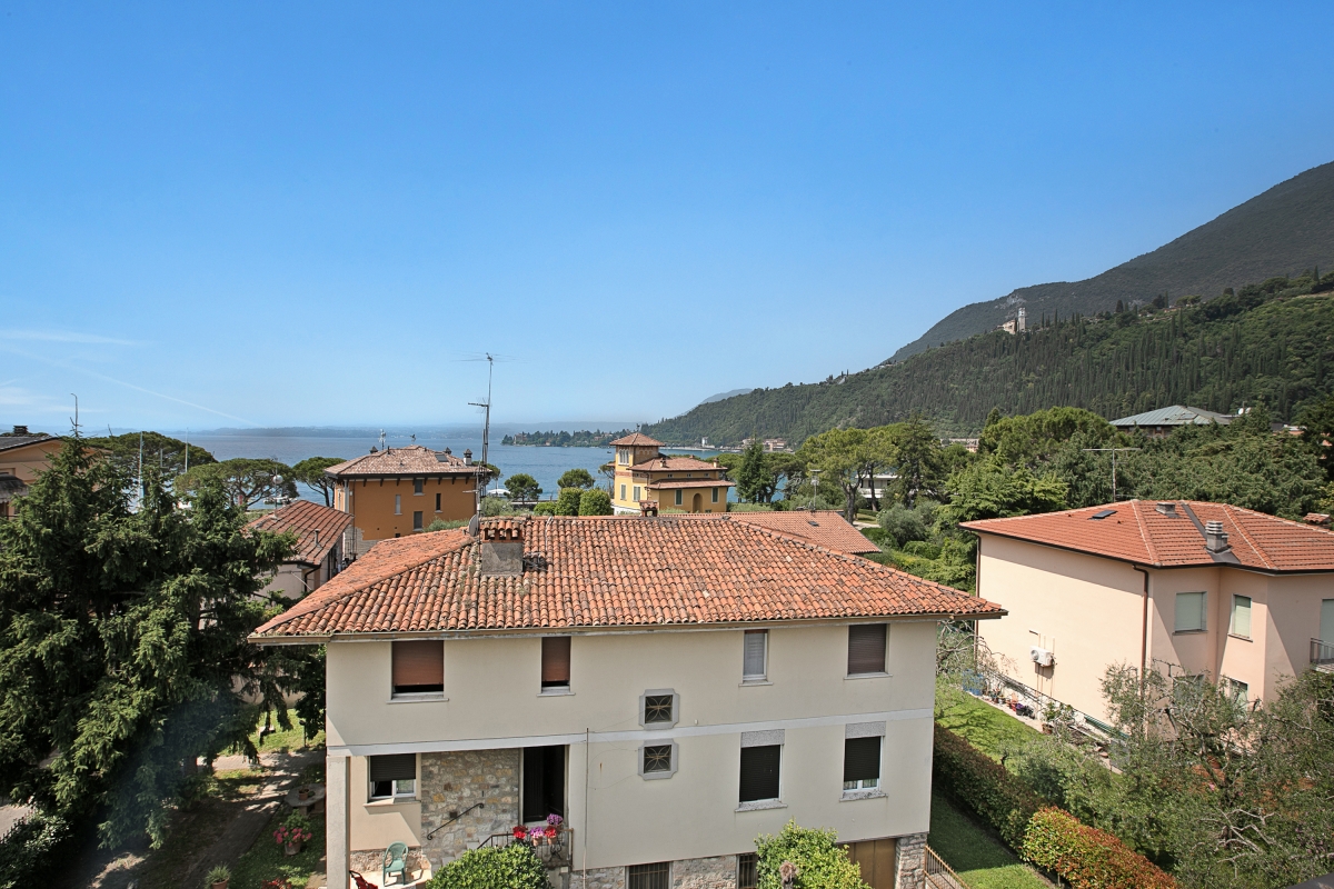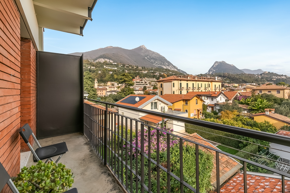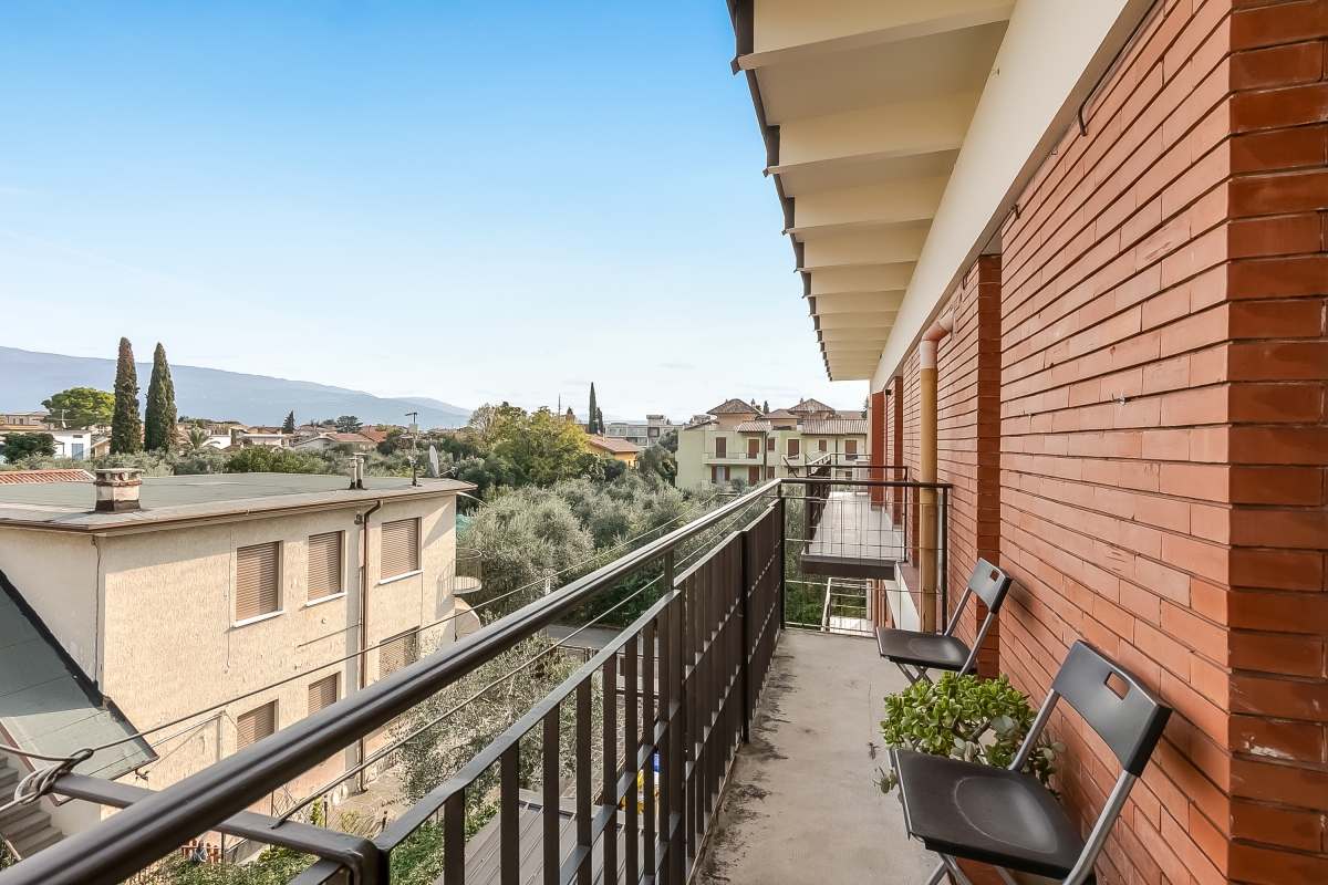 Situated at the top of a small apartment building, the property benefits from a communal roof terrace, where guests can unwind, surrounded by beautiful vistas of Lake Garda and beyond.