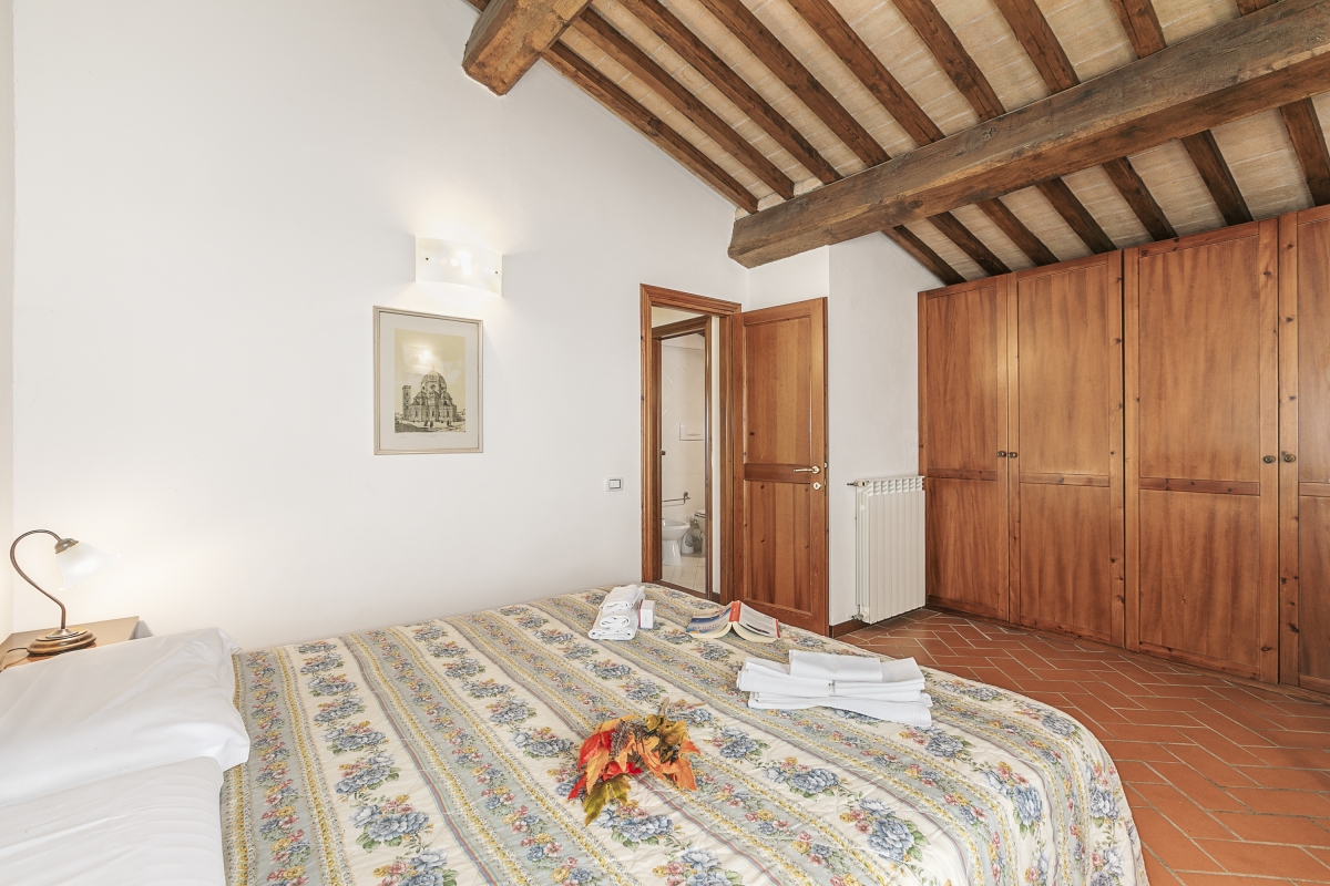 Quietly perched at the top of a sunny hillside, amongst olive groves and rows of vines this gorgeous holiday escape is part of an old farmhouse. The property is one of 8 units all finished with terracotta floors and wood-beamed ceilings. The entire Borgo is surrounded by the wonderful Tuscan countryside and enjoys an incredible 360° panoramic view over the Chianti hills.