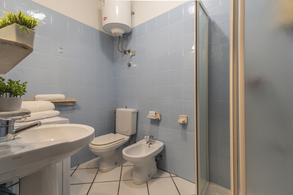Bathroom 1: This bathroom has a shower, a bidet and a WC.