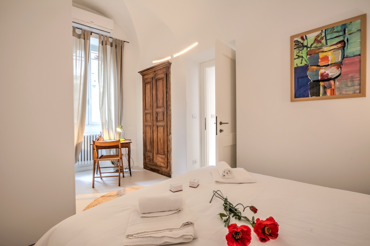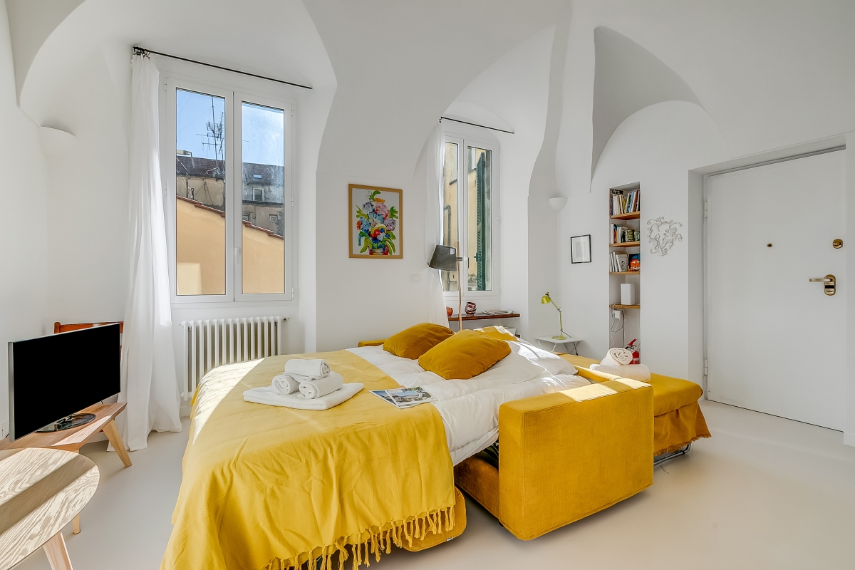 Situated on the first floor of a historic building in the old town of Sanremo, this charming one-bedroom apartment for 2 offers a unique blend of history and modern comfort. Just a stone's throw from the Ariston Theatre, the port, and the central beaches, it enjoys a prime location in the lower part of the Pigna. Newly reconstructed, the apartment retains the architectural charm of a noble 16th-century palace, featuring thick walls and high vaulted ceilings that add character and elegance to the space.