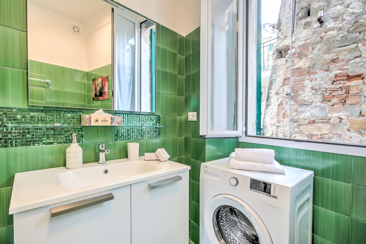 Bathroom 1: The bathroom is equipped with a washing machine, a shower, a bidet and a WC.