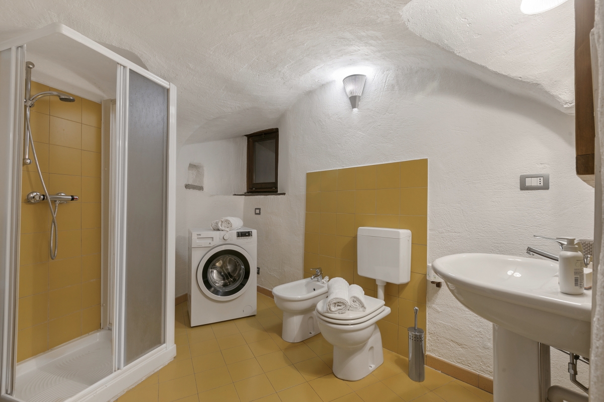 Off the entrance hall, the bathroom has a shower, basin, bidet, washing machine and WC.