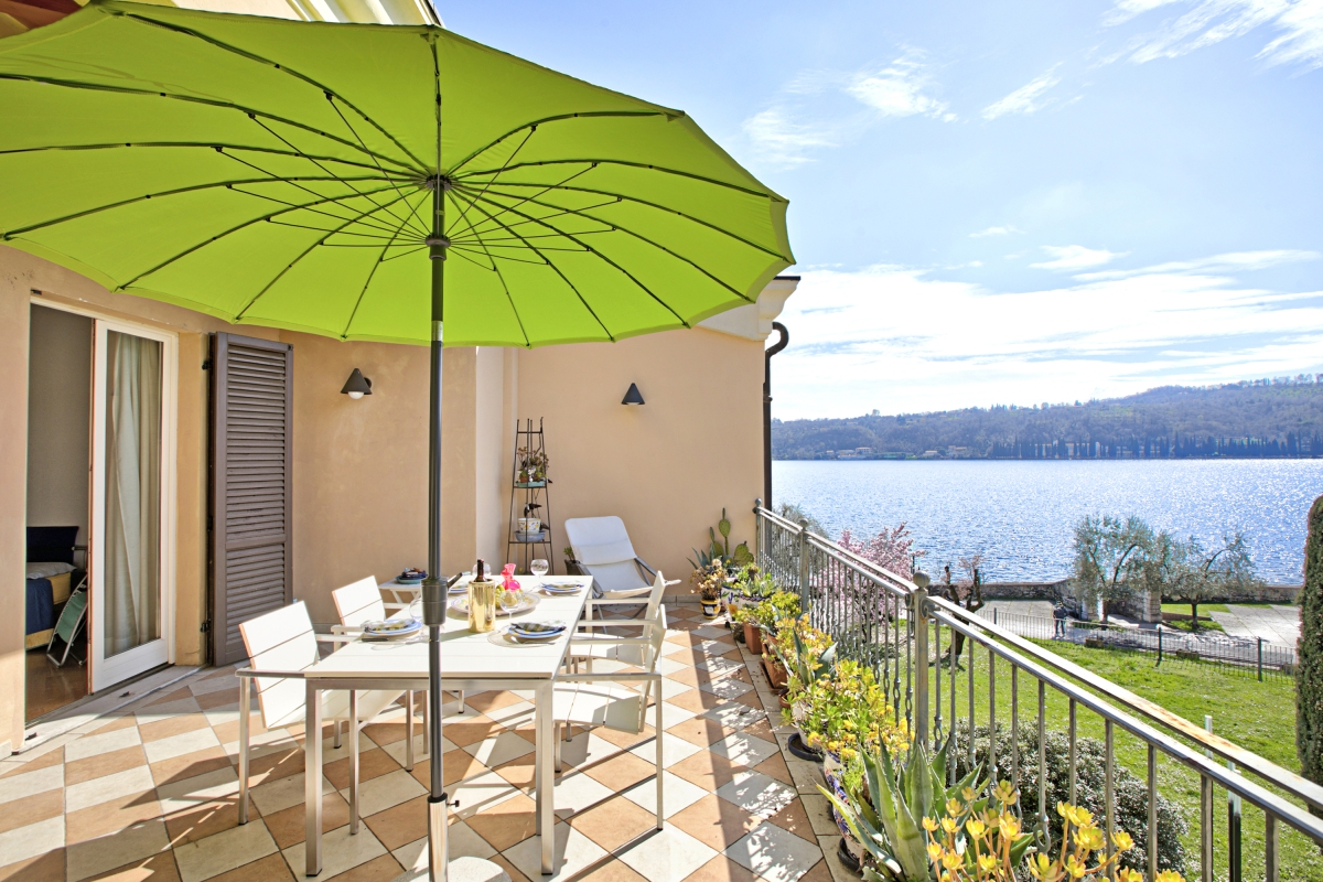 Escape to this stunning lakeshore apartment with a terrace and outside dining.