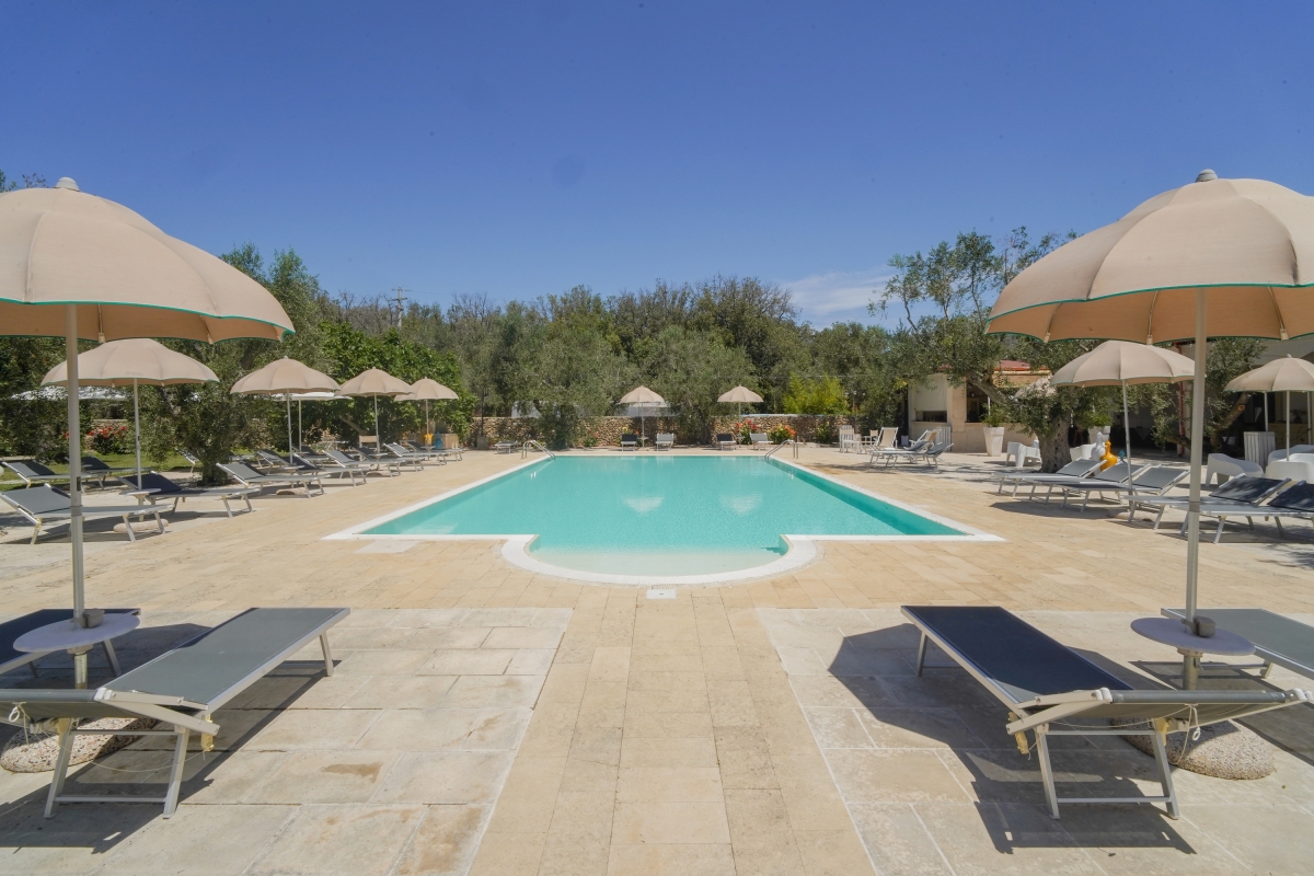 The large, shared swimming pool is surrounded by an extensive terrace, furnished with sun loungers, umbrellas and seating areas. It makes the ideal spot to relax in the sun after a refreshing dip. There is also a massage and well-being centre on site where guests can have a soothing massage or other treatments.