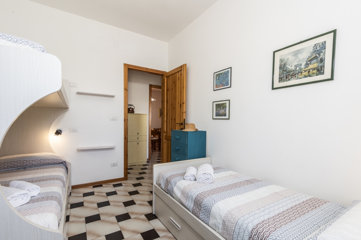 Bedroom 2: The second bedroom has a bunk bed, a single bed and extensive storage space.