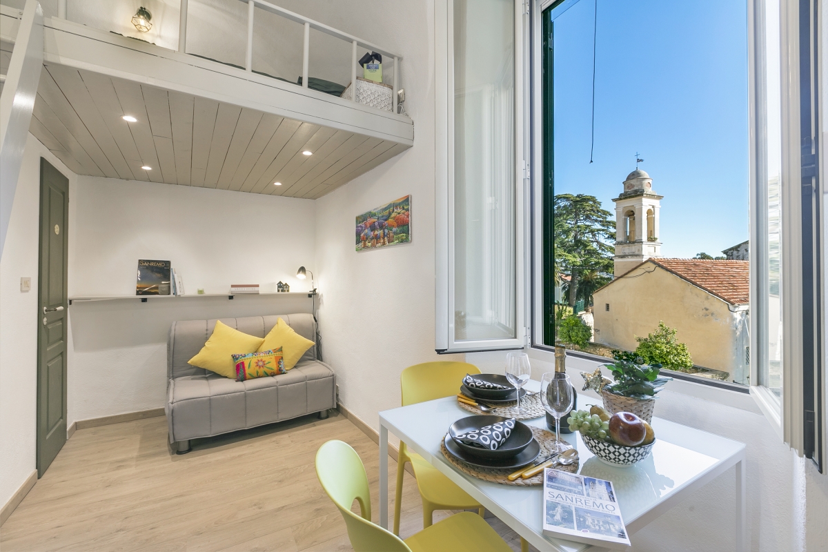 This apartment is located in the old town, on a pedestrian street that requires a short uphill walk to access. Enjoy access to historic landmarks, including La Pigna di Sanremo, Fontana Artistica Monumentale dei Giardini Regina Elena, Anfiteatro San Costanzo, and Museo Civico di Sanremo—all just a short stroll away. A variety of local restaurants, bars, and cafés line the nearby streets, offering the perfect setting to experience regional flavours. Supermarkets are conveniently within a 5-minute walk.