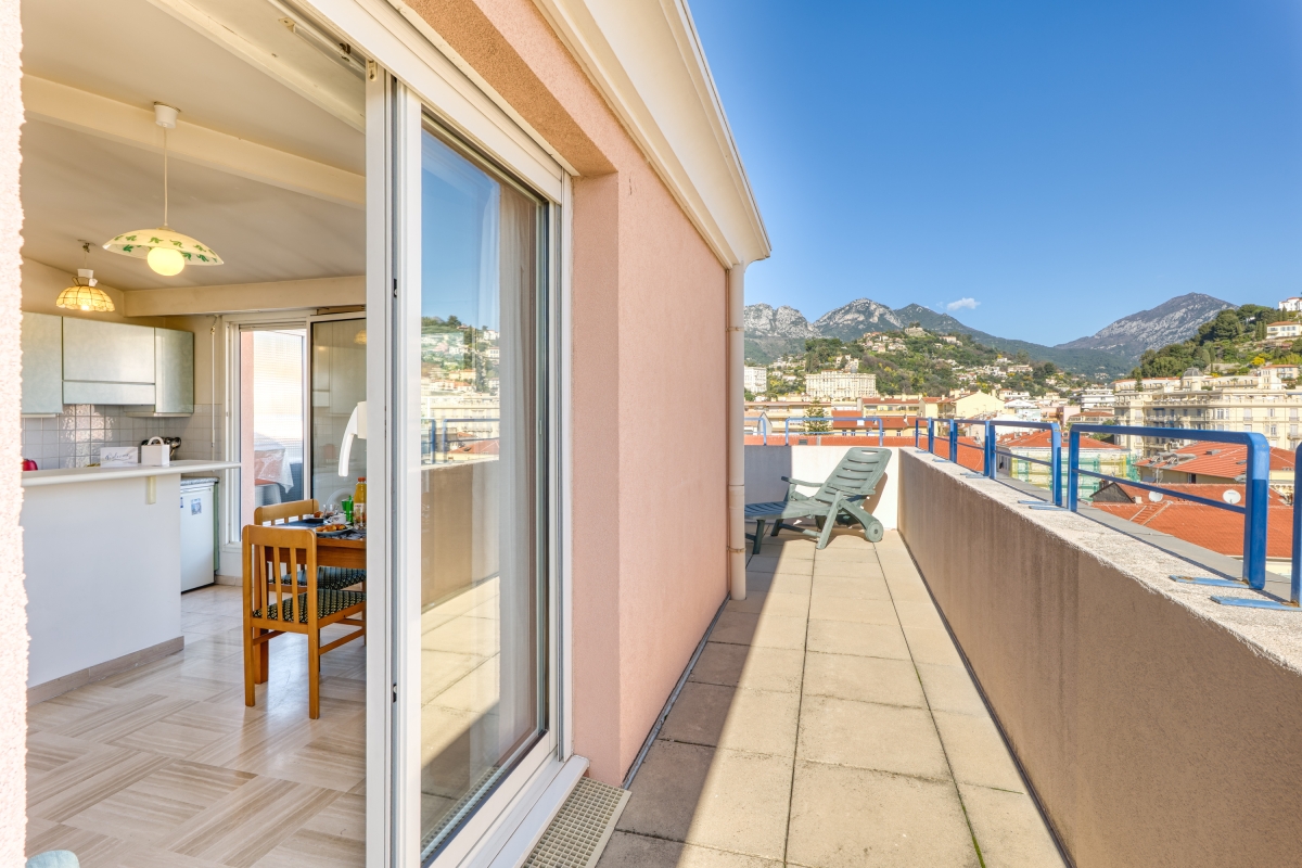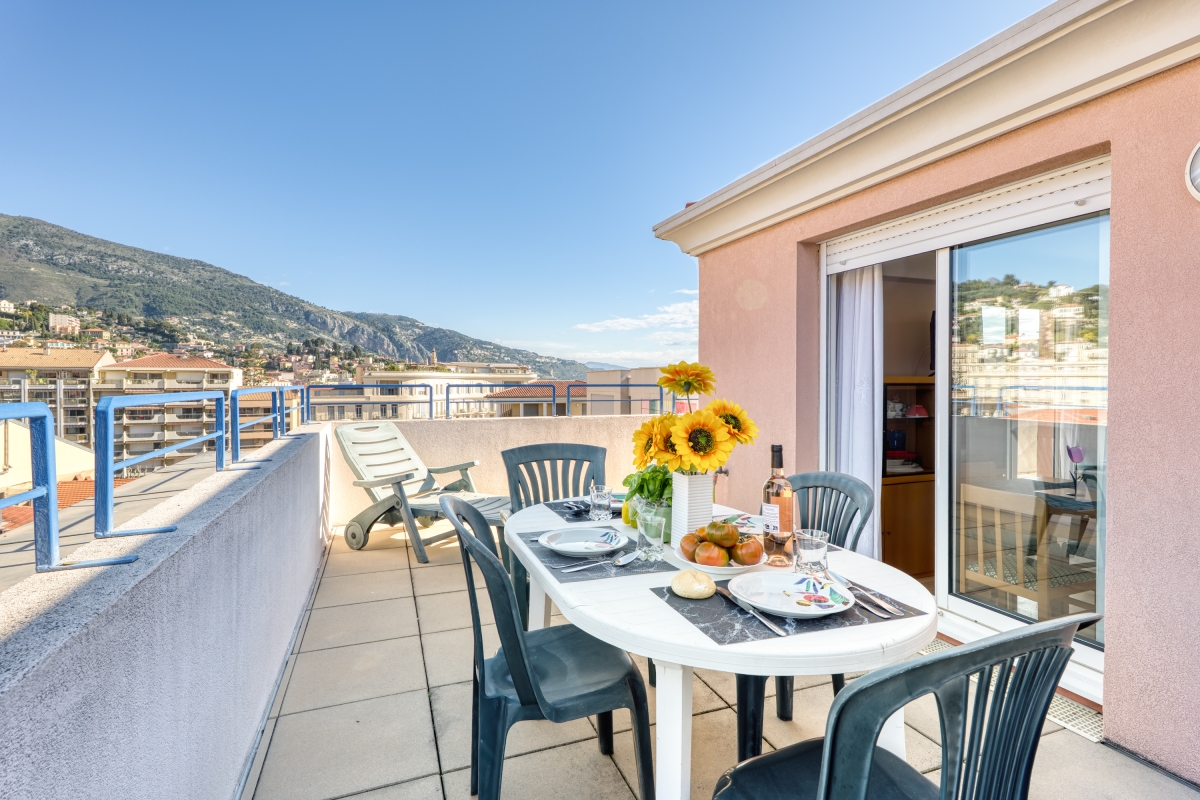 A sunny penthouse in the heart of Menton, this 9th-floor apartment (with lift) is a 3-minute walk from the Promenade du Soleil, Menton’s elegant seafront and the Plage du Borrigo beach. It is a peaceful retreat for friends or family who want to explore this popular resort town on the Cote d’Azur throughout the year.