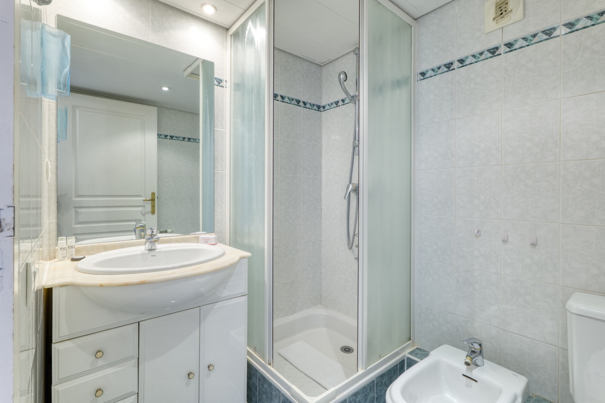 The apartment sleeps 4 people and, thanks to its position on the 9th floor, enjoys panoramic views of the Mediterranean, Menton and the hills that surround the town. The open-plan living space is full of light with two French windows, which open onto the elegant balcony, running along both sides of the apartment. The sitting area is furnished with two armchairs and a flat-screen TV. Next to this is a dining table. The kitchen is separated from the dining area by a breakfast bar and is equipped with a cooker hob, microwave, coffee machine, dishwasher, fridge/freezer and washing machine