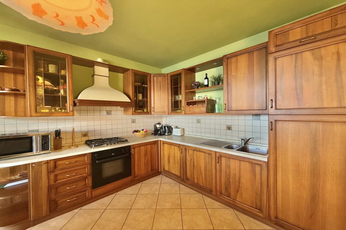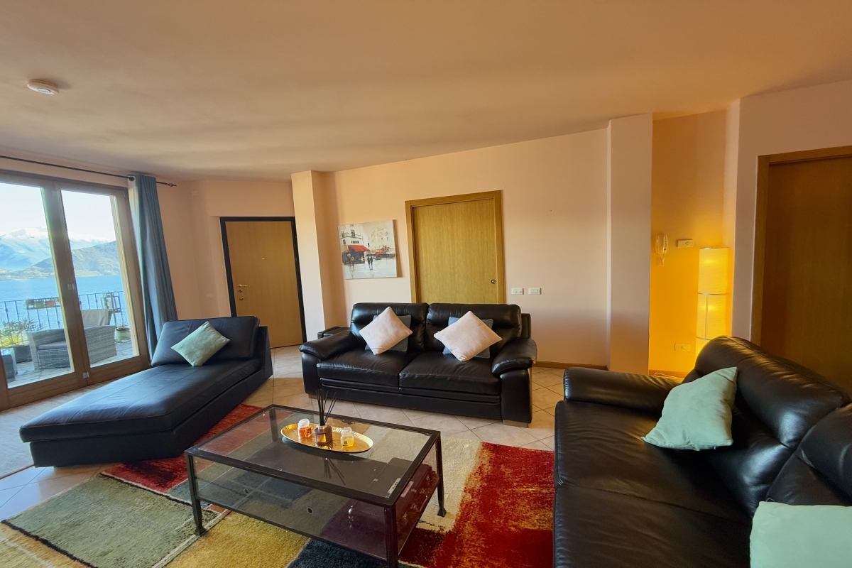 Peacefully located in Pianello del Lario, this modern semi-detached house is arranged across 3 floors, and features 5 spacious bedrooms, perfect for families and honeymoon couples seeking tranquillity. The expansive living room is designed for relaxation, providing scenic charm from inside. The living room is bathed in natural light and is furnished with plush sofas, a flat-screen TV, a bookshelf, and a centre table. Large French windows flood the space with natural light and open onto a beautiful terrace, where guests can enjoy outdoor dining with spectacular views, whether sipping morning coffee or unwinding with an evening glass of wine.