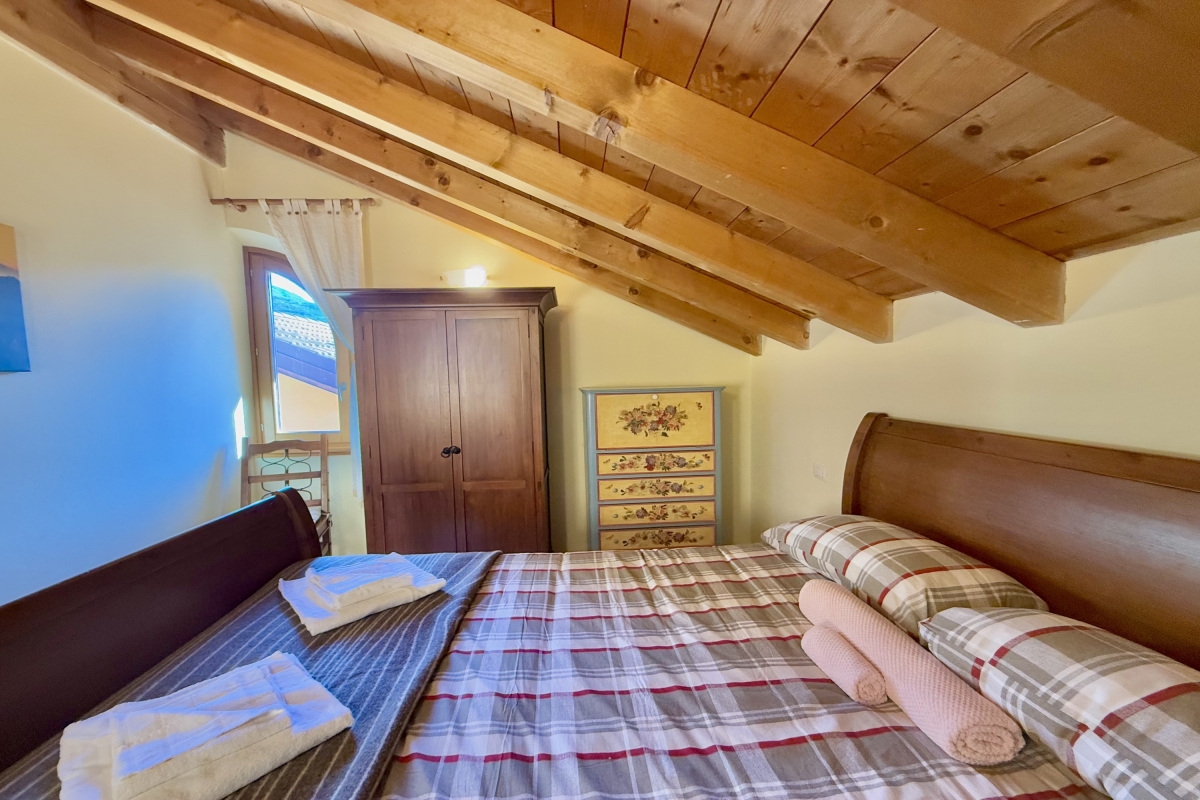 Bedroom 4: This bedroom is on the second floor and has a double bed, a single bed and a wardrobe.