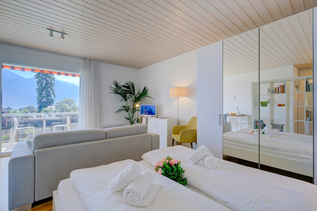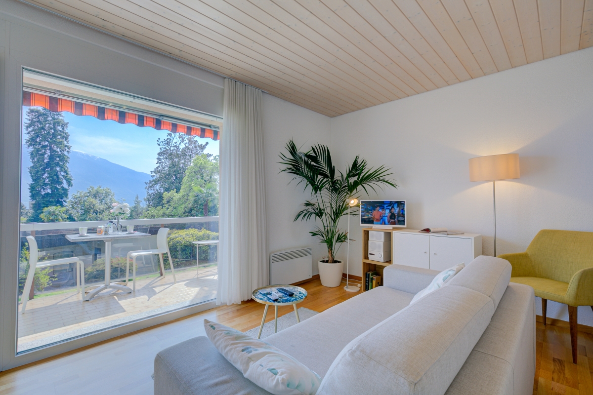 Wake up to magical views of the lake and mountain magic at this ideally situated escape just 250 meters from the sparkling shores of Lake Maggiore, in the heart of Muralto. Perfect for couples, this cosy first-floor apartment offers a romantic escape with incredible scenery that can be enjoyed from your bed or a private terrace.