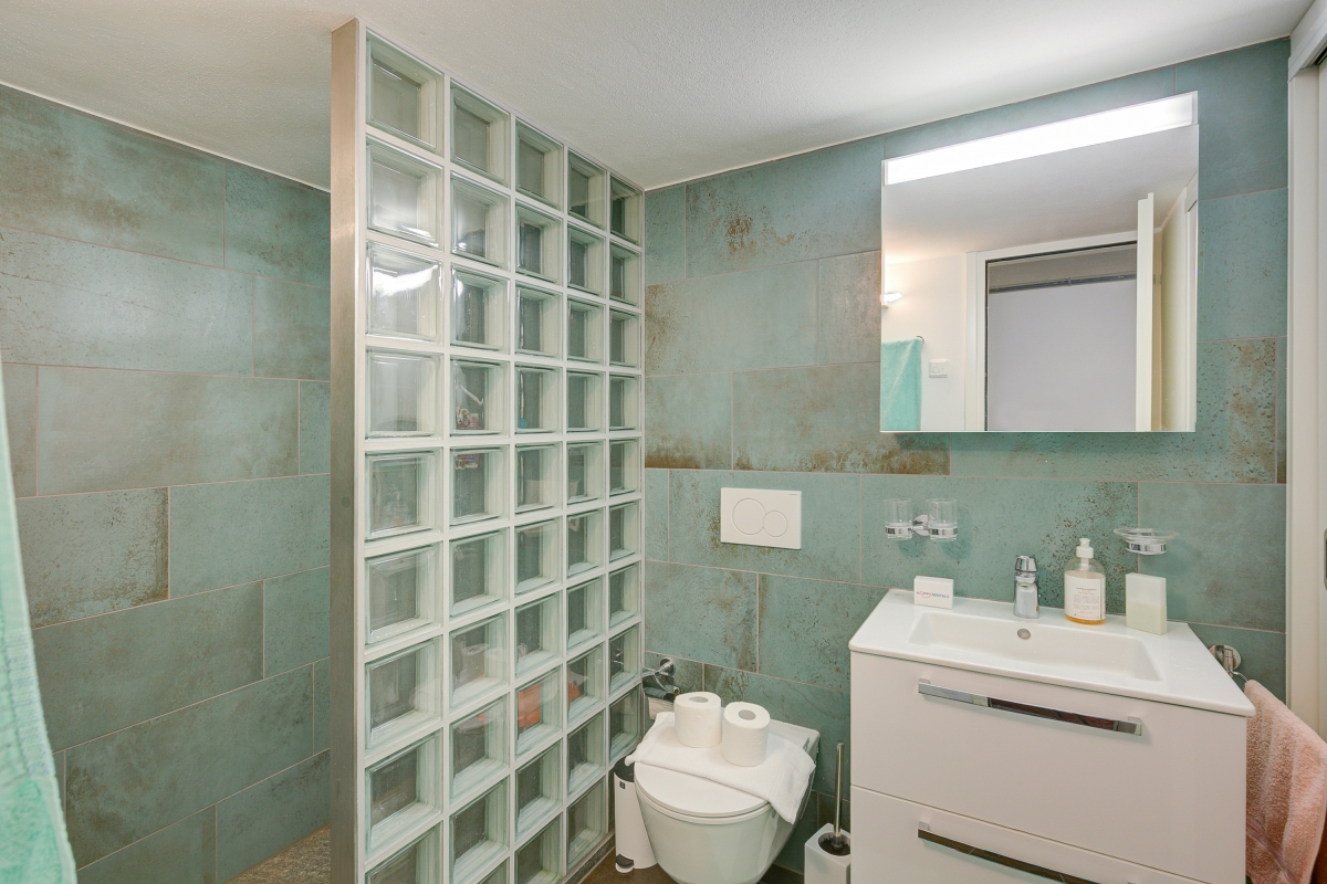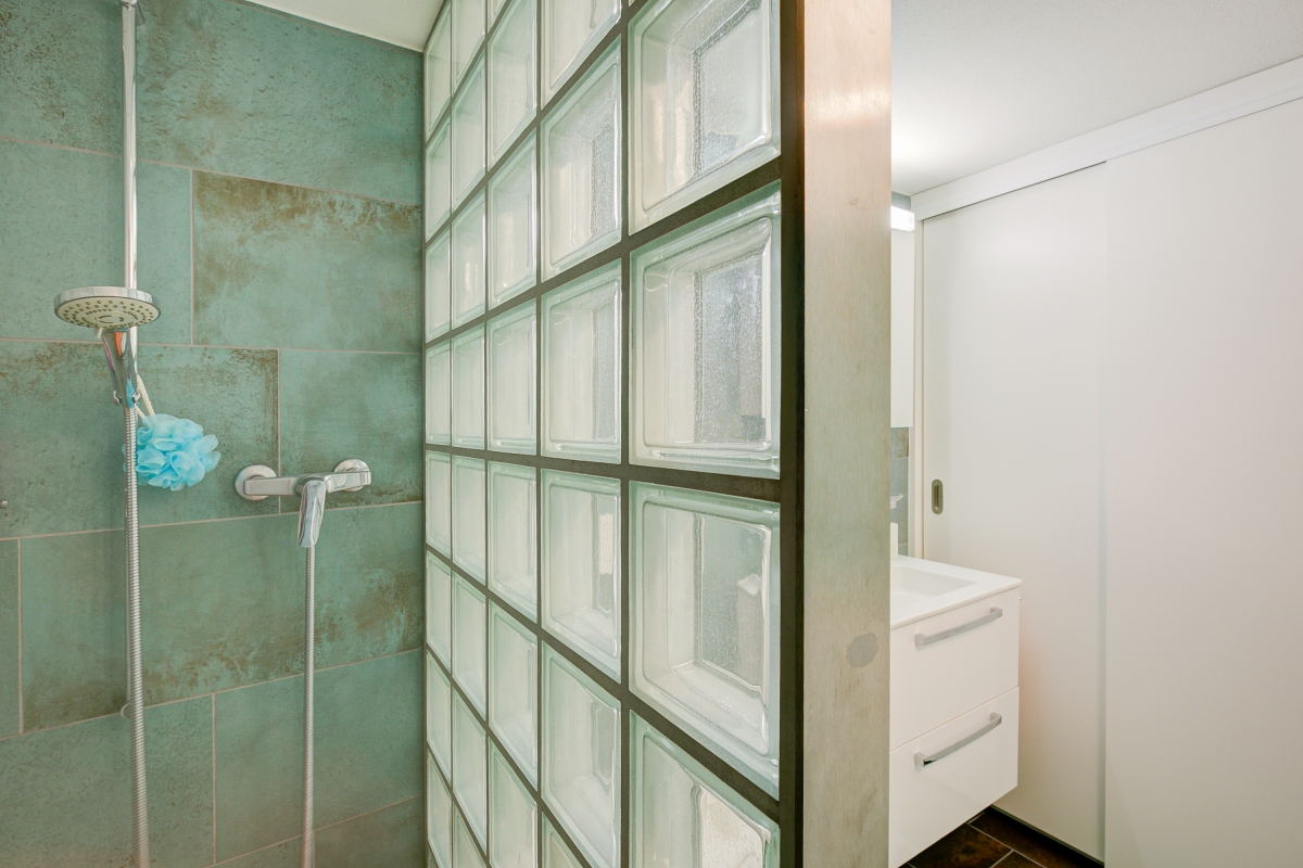 Bathroom 1: This bathroom has a shower, sink, and toilet. Located on the lower floor (-1).