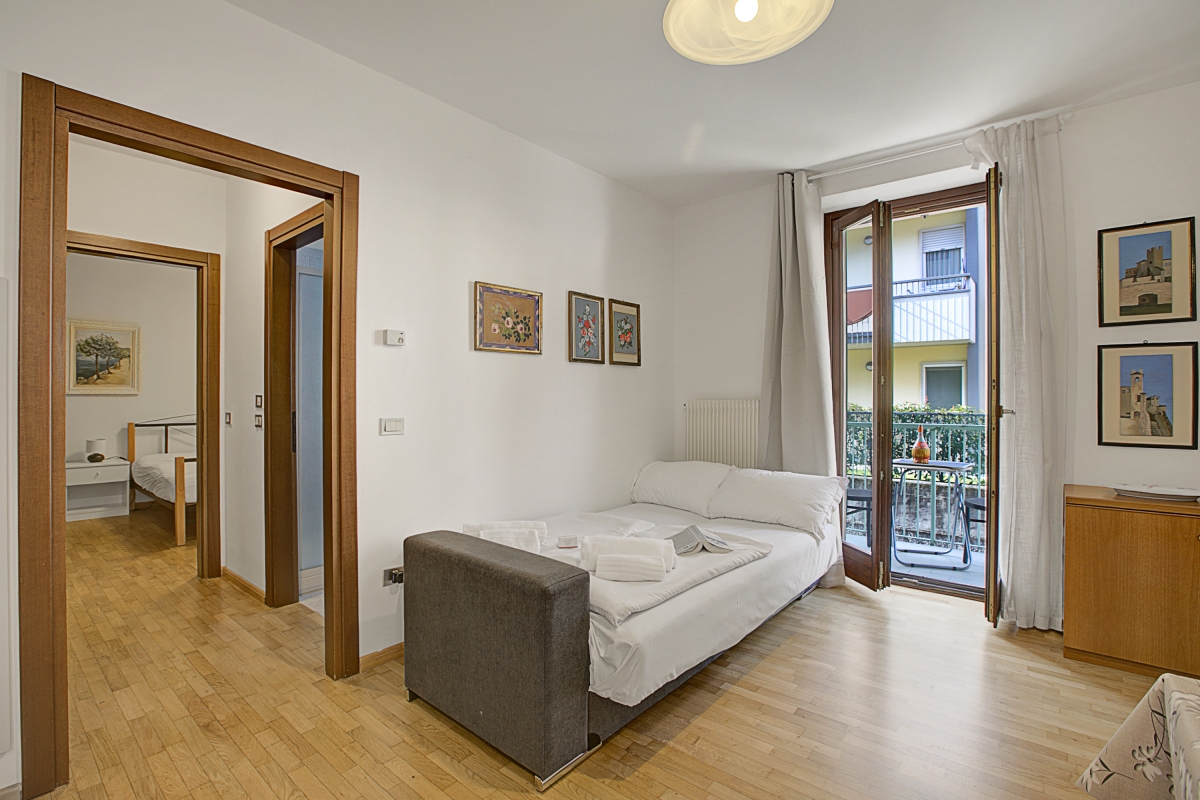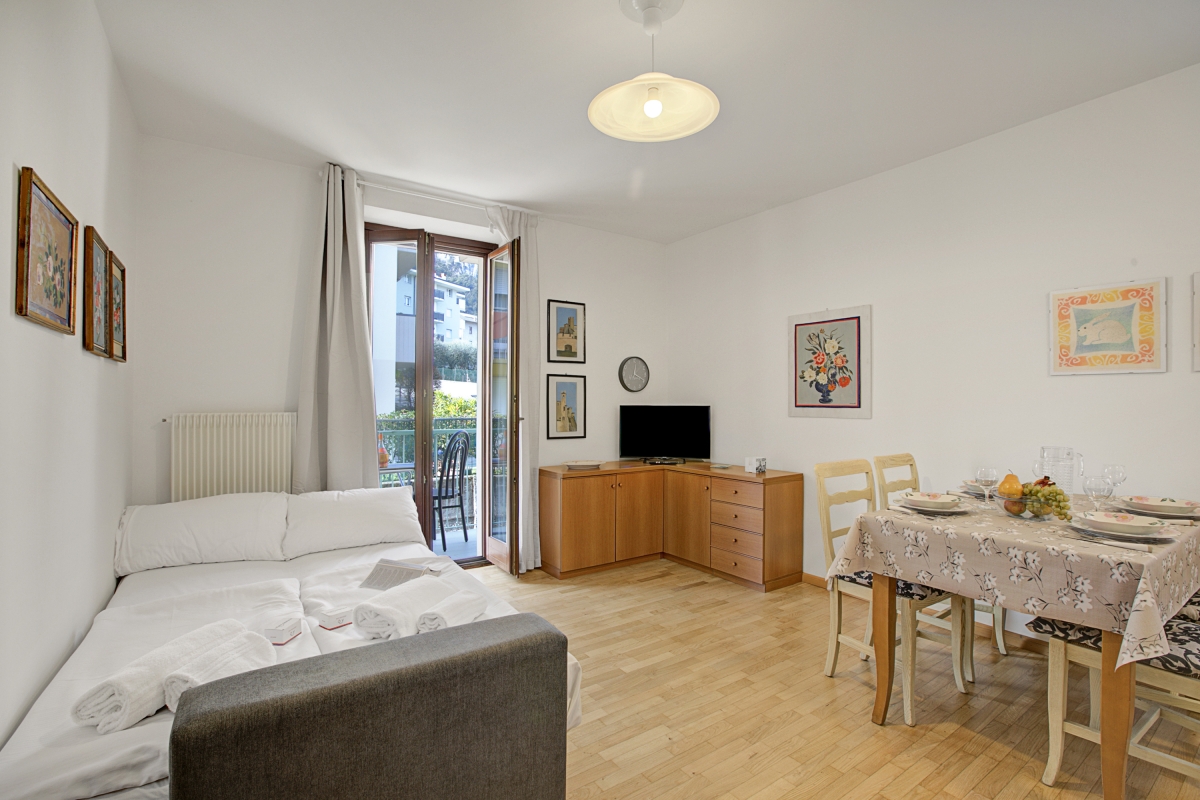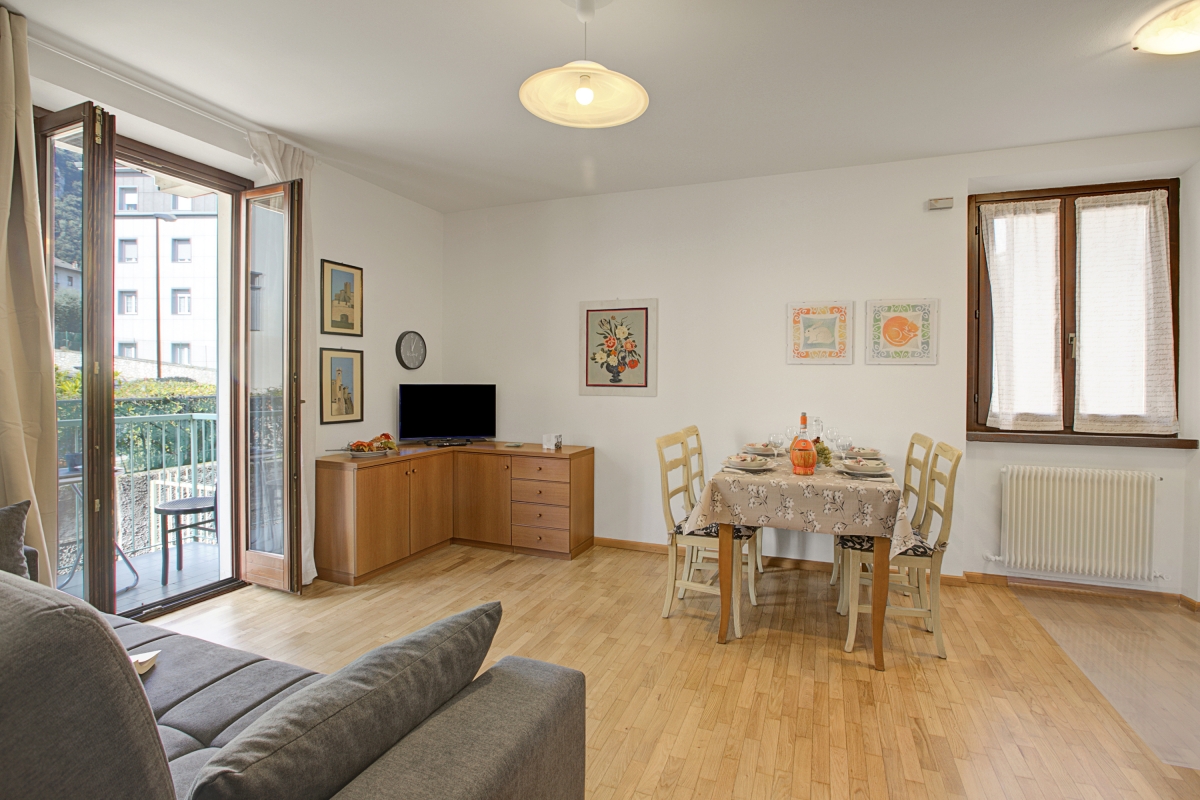 Located in a quiet neighbourhood of Riva del Garda, this contemporary apartment offers a peaceful retreat with beautiful mountain views. It is situated on the first floor of a modern building with a lift for easy access. This bright and inviting space features 1 bedroom and a spacious living room, comfortably accommodating up to 4 guests. A tastefully designed apartment, it provides 2 private balconies accessible from both the bedroom and the living room, perfect for outdoor dining while enjoying the breathtaking scenery.