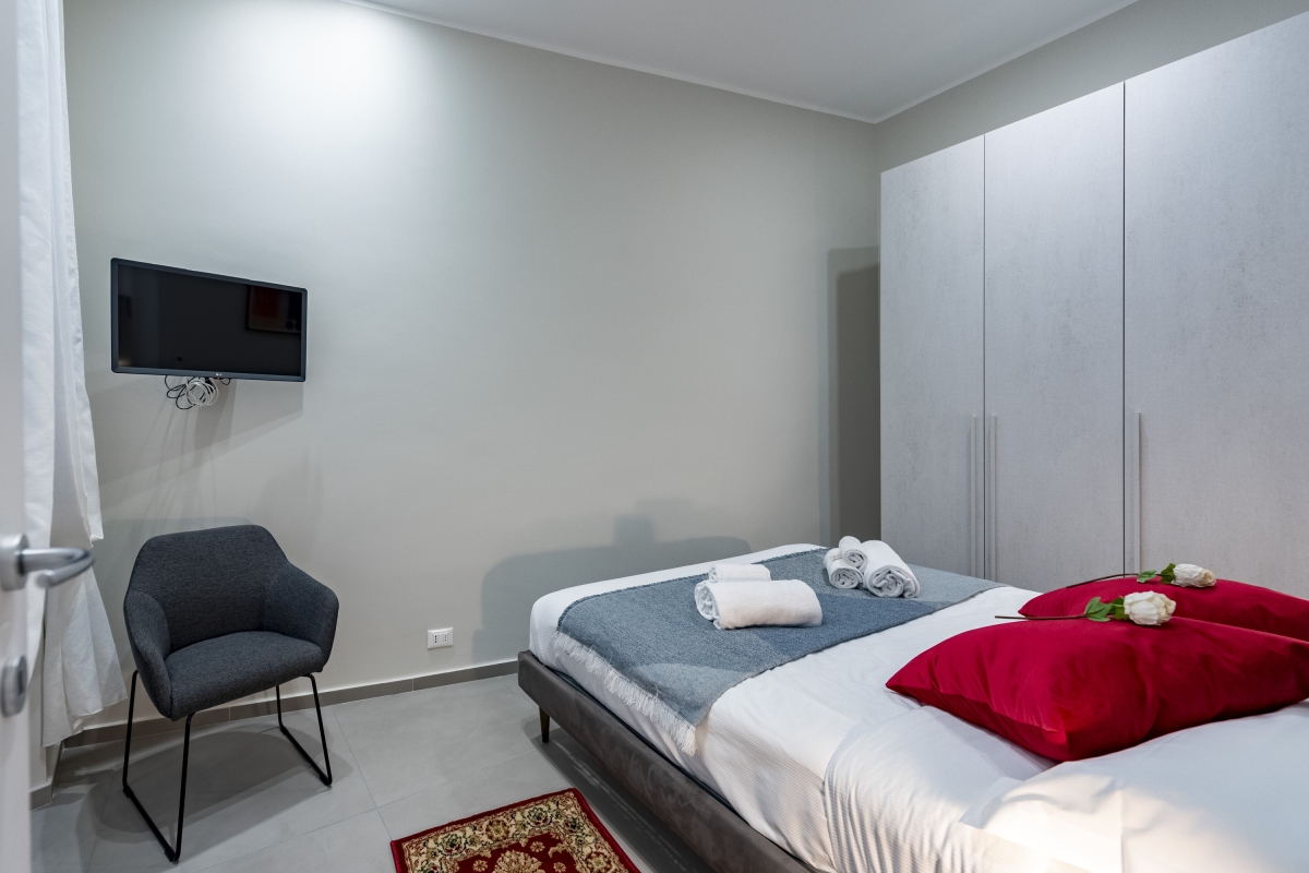 A modern apartment in the heart of Genova that can accommodate up to 10 guests, is perfect for families and groups. The interior of the flat is spacious and thoughtfully designed. The living room has two comfortable double sofas, a TV, air conditioning and a dining area. The kitchenette has modern appliances, including a coffee machine, dishwasher, microwave, fridge, and induction hob.