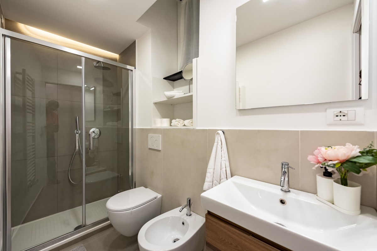 Bathroom 1: This bathroom has a bidet, shower, and WC.