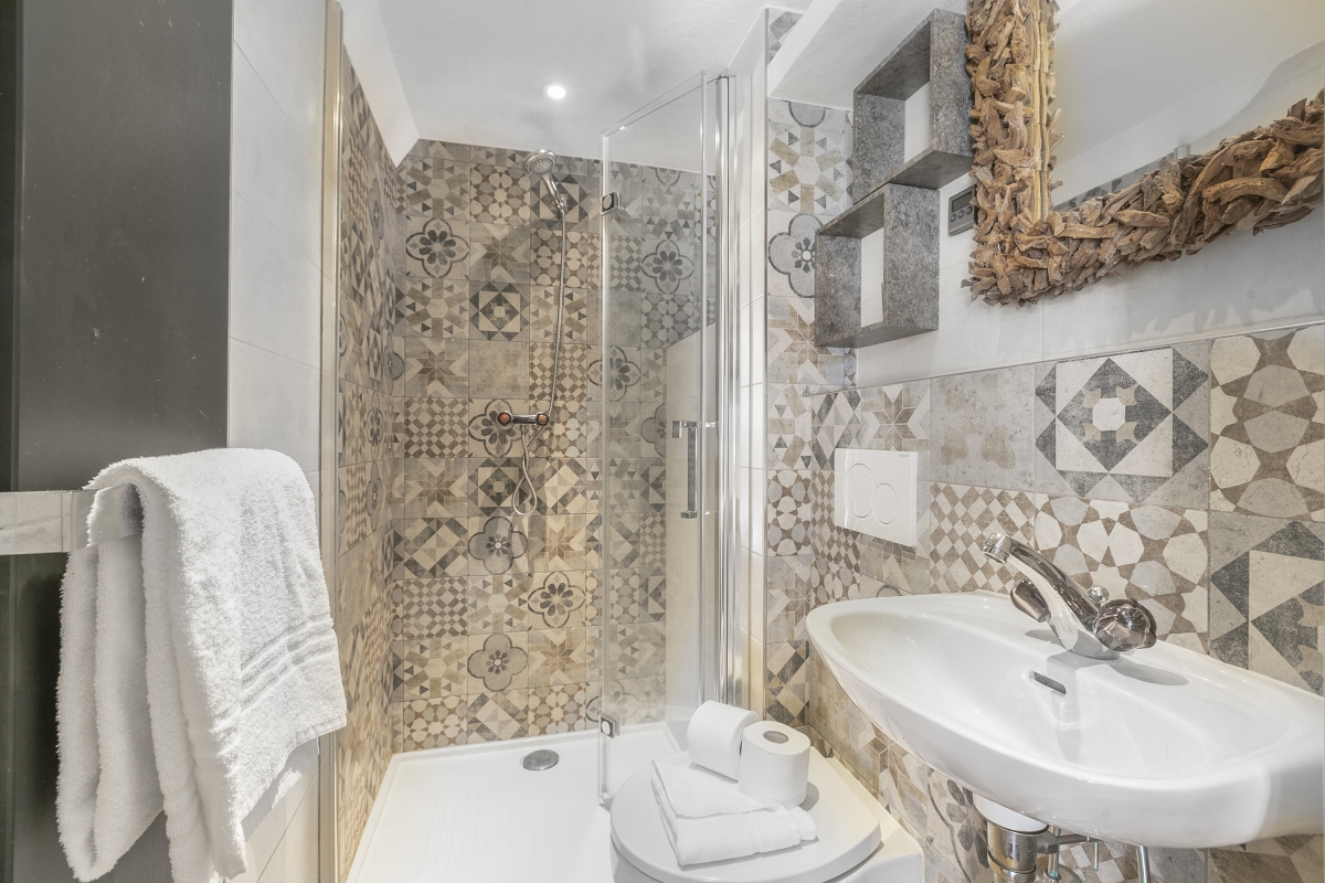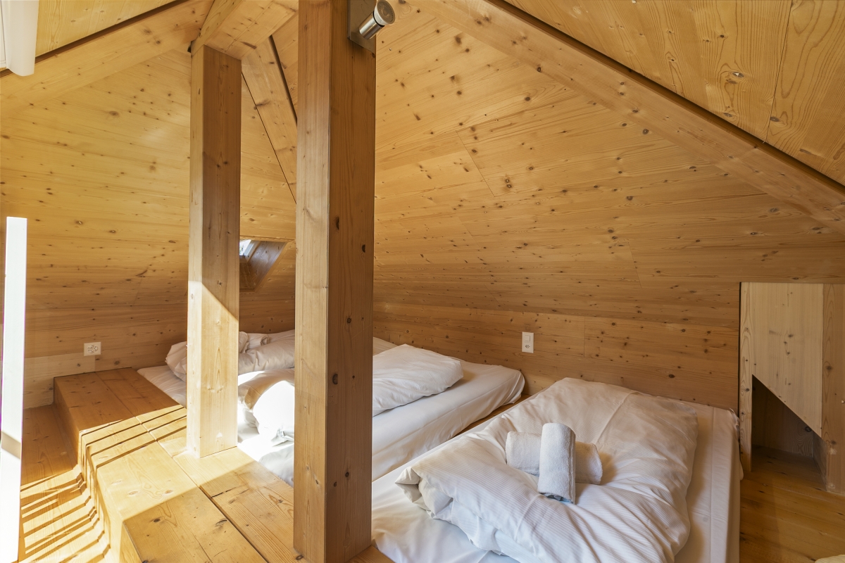 Inside, the ground floor features an inviting living room that opens onto a terrace, providing a delightful space for relaxation. The well-equipped kitchen, a coffee machine, an oven, a cooker hob, and a fridge. The first floor includes a cozy dining area and access to a sunny solarium. Above, you’ll find a master bedroom, a dressing room, and a loft space with four single beds—ideal for kids or extra guests.