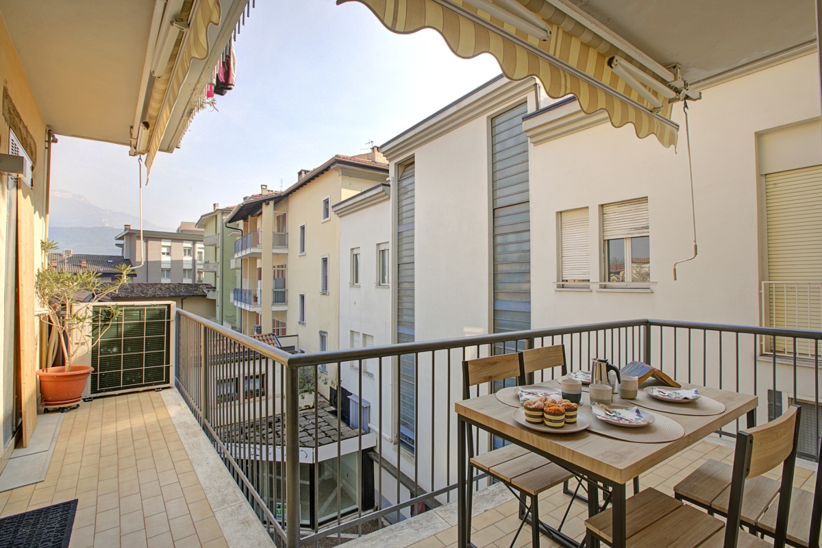 Explore the beautiful Lake Garda at this apartment in the heart of Riva del Garda with a balcony and outside dining.