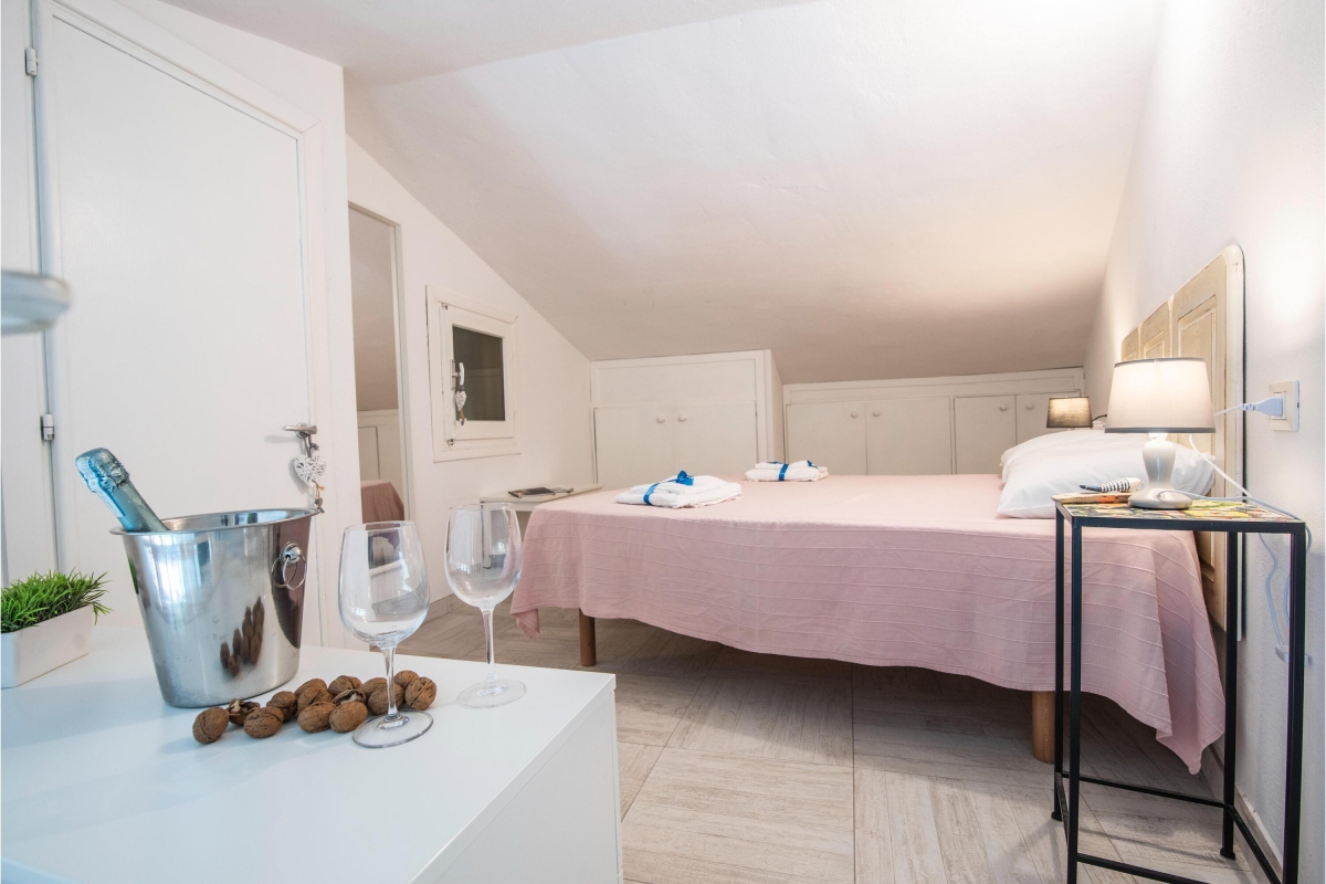 Le Dalie is a chic apartment that comfortably accommodates up to 5 guests and is on the first floor of a three-story building. The living room is bright and inviting, offering a terrace for relaxation. Modern amenities include free Wi-Fi and a TV, ensuring a comfortable stay. The apartment features a fully equipped kitchen with a coffee machine, electric kettle, microwave, fridge, and induction hob.