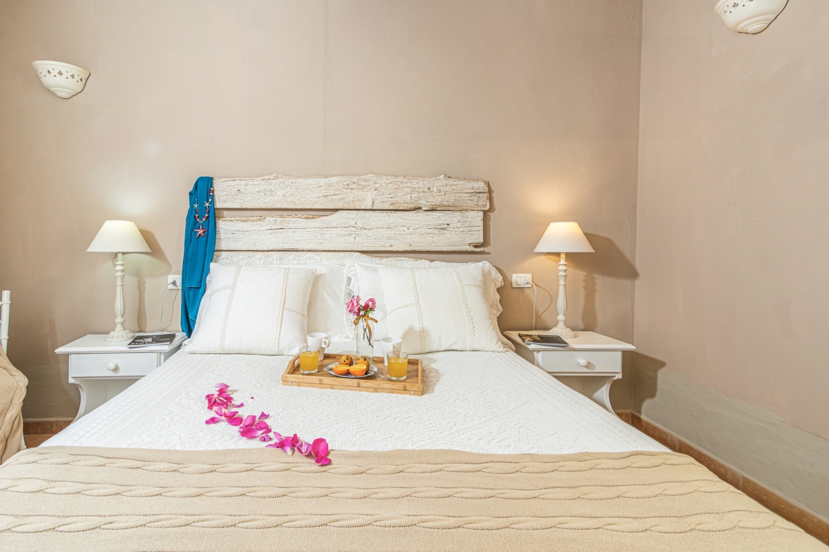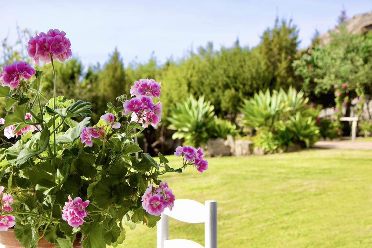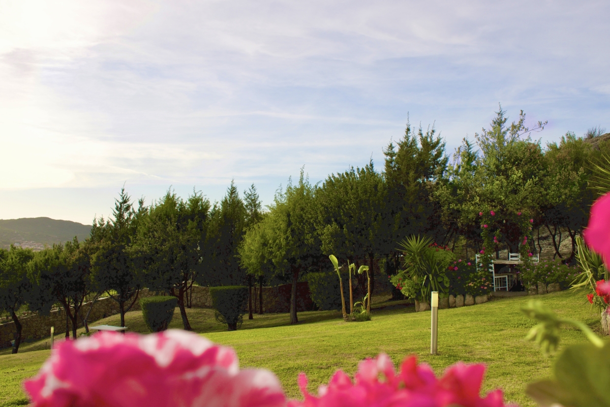 Outside, a picturesque Mediterranean garden unfolds, where granite rocks, junipers, and vibrant flowers blend harmoniously with the lush greenery. Enjoy alfresco dining at the garden’s charming tables and chairs, sip aperitifs as the sun sets over the rolling hills, or simply relax on sun loungers and hammocks, soaking in the serene ambiance.