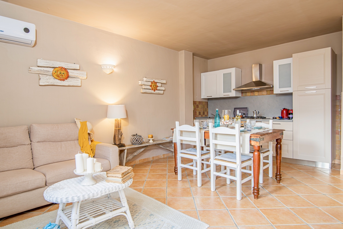 Immerse yourself in the charm of a cozy 1-bedroom apartment in Baja Sardinia, a 7-minute drive from stunning beaches.