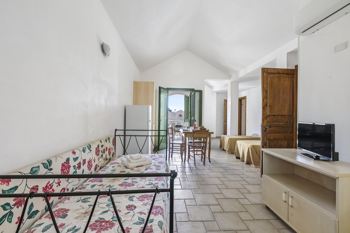 Located within a vibrant 4-star resort near Otranto in the heart of Salento, the apartment offers an ideal setting for a fun-filled family holiday. Designed using traditional Puglian stonework, the family-friendly resort boasts lush gardens, a large swimming pool, and a warm, welcoming atmosphere. The 1st-floor apartment comfortably accommodates 4 guests and features a charming arched balcony, complete with a table and chairs for enjoying leisurely al fresco meals or morning coffee.