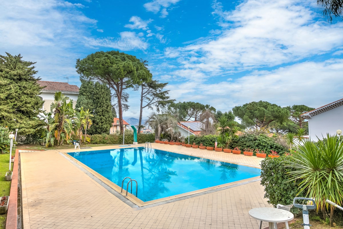 The residence has a shared pool, which is equipped with sun loungers where guests can relax after a refreshing dip.