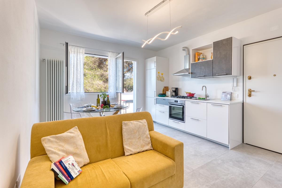 This apartment is in Marina di Andora, a beautiful coastal town in Liguria, Italy. A hub for water sports, Andora hosts international competitions in sailing, surfing, windsurfing, kitesurfing, and SUP. Now, with the Sport nei Parchi initiative, the town extends its sporting culture to free outdoor activities for all. The nearest beaches are Costa d'Oro, Bagni Amici Beach, and Libera Beach, reachable within a 10-minute drive.
