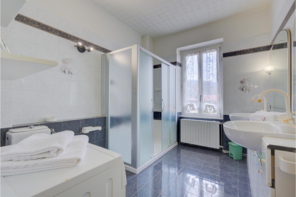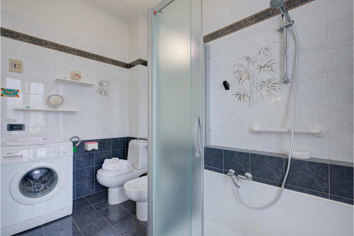 Bathroom 1: The spacious, tiled bathroom is fitted with a shower, a bidet, a washbasin and a WC