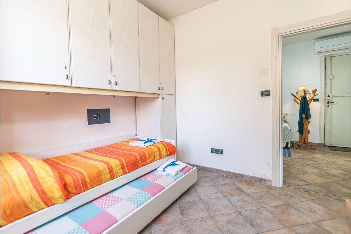 Bedroom 2: The second bedroom has a single bed with a pull-out single bed and a wardrobe.