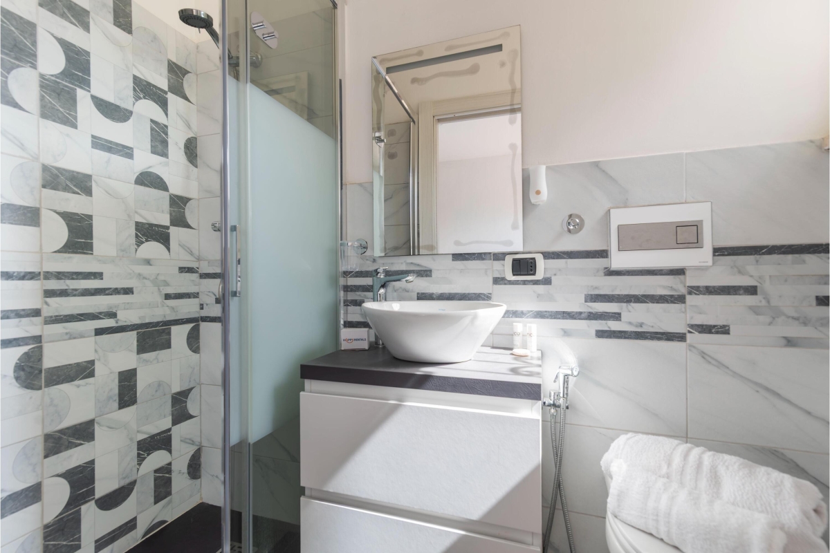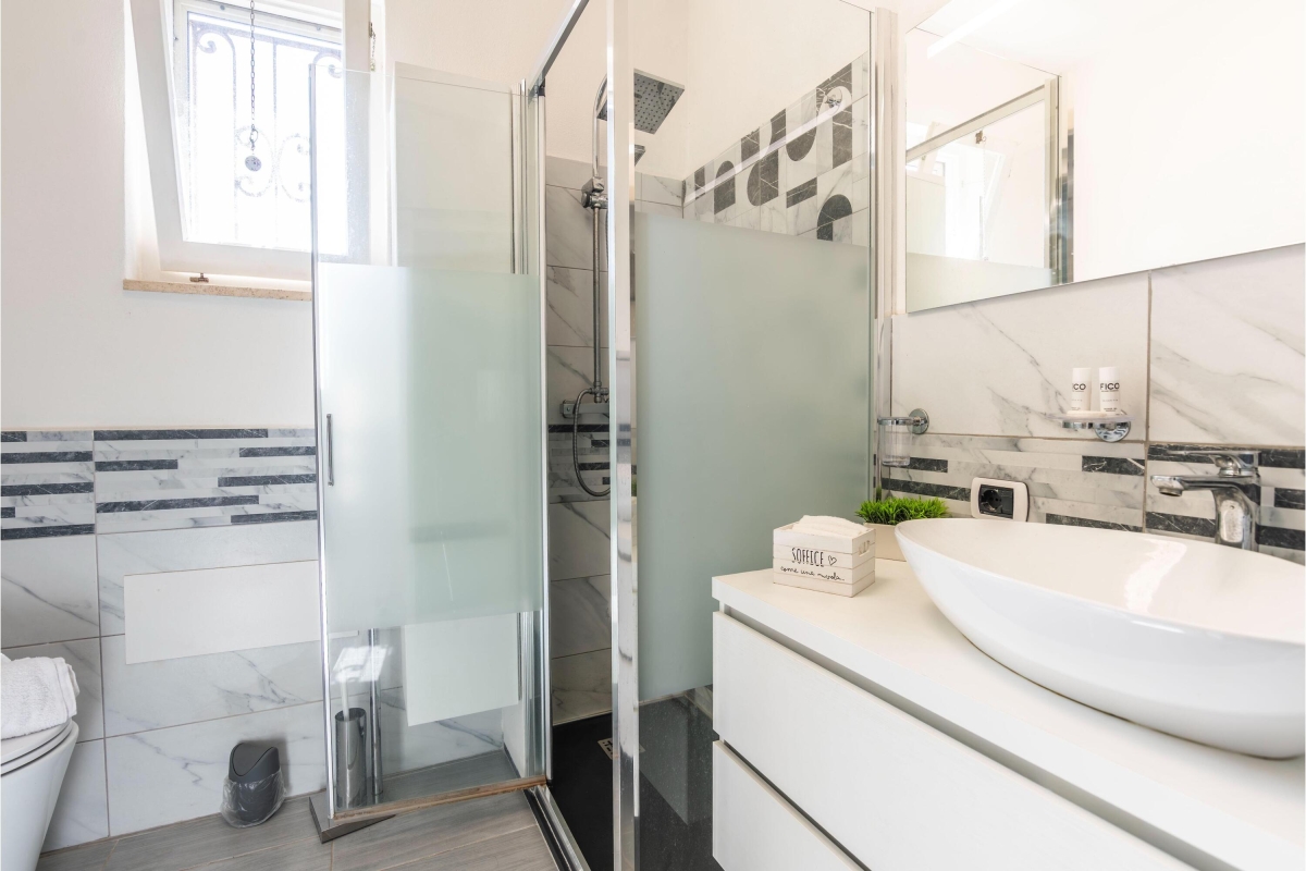 Bathroom 2: The separate bathroom has a shower, basin, bidet and WC.