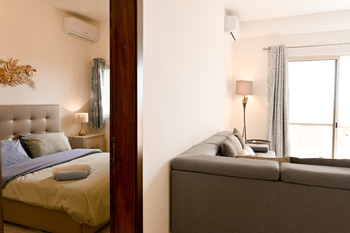 Experience the serene beauty of Gozo in this tranquil apartment nestled in the peaceful village of Iz-Żebbuġ. This beautifully furnished home offers breathtaking views of the Mediterranean Sea and the lush surrounding valley, ideal for families or groups seeking comfort, style, and relaxation. With 3 spacious bedrooms accommodating up to 6 guests, there is also an extra mattress for one, and a sunlit living room featuring large windows that frame the stunning landscape, creating a perfect space to unwind in natural light and tranquility.