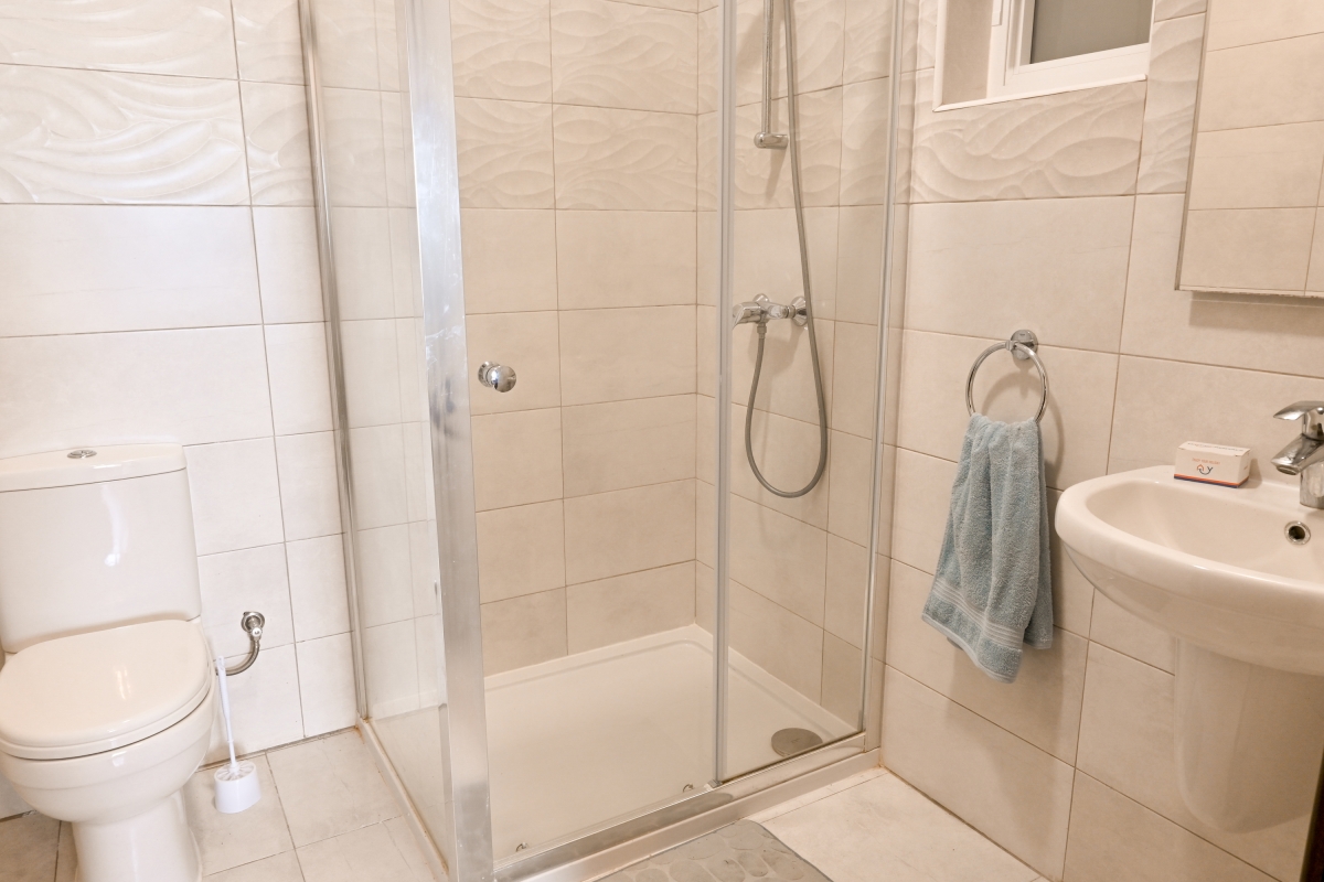 Bathroom 2: An en-suite bathroom with a shower, a wash basin and a WC.