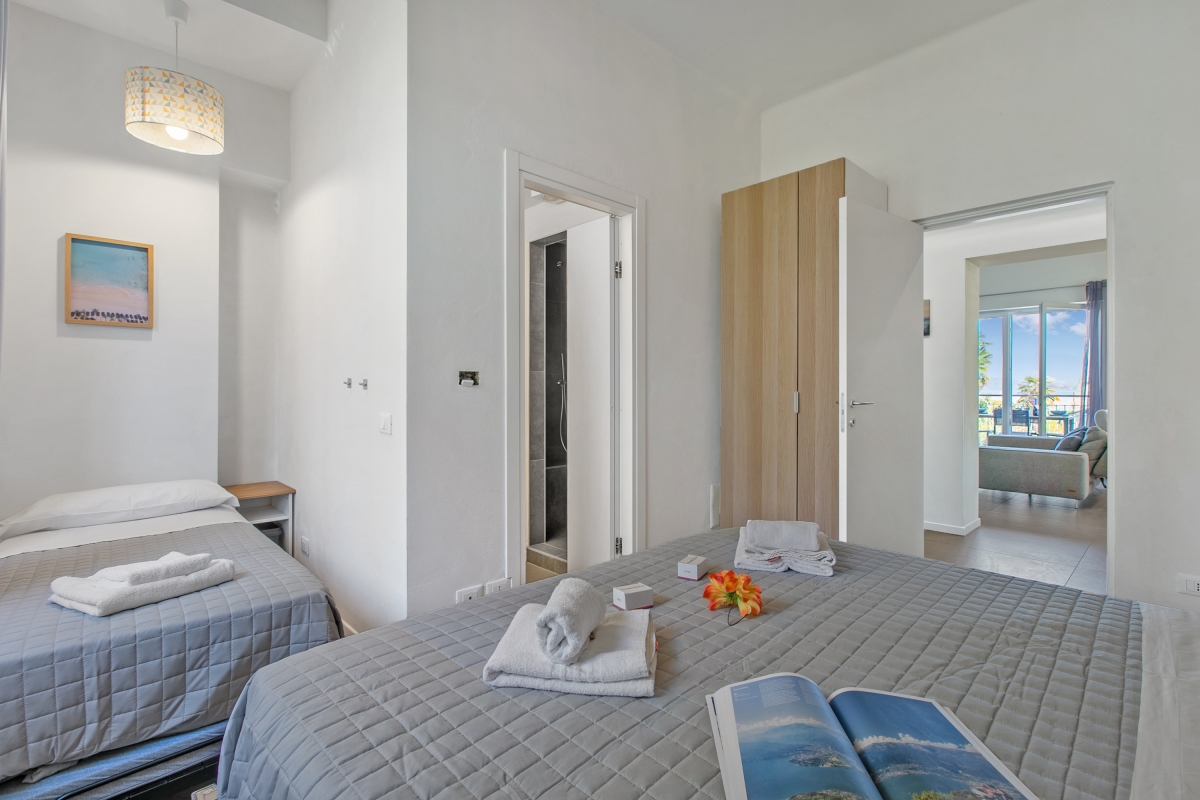 Bedroom 1: The master bedroom has a king-size double bed and a wardrobe.