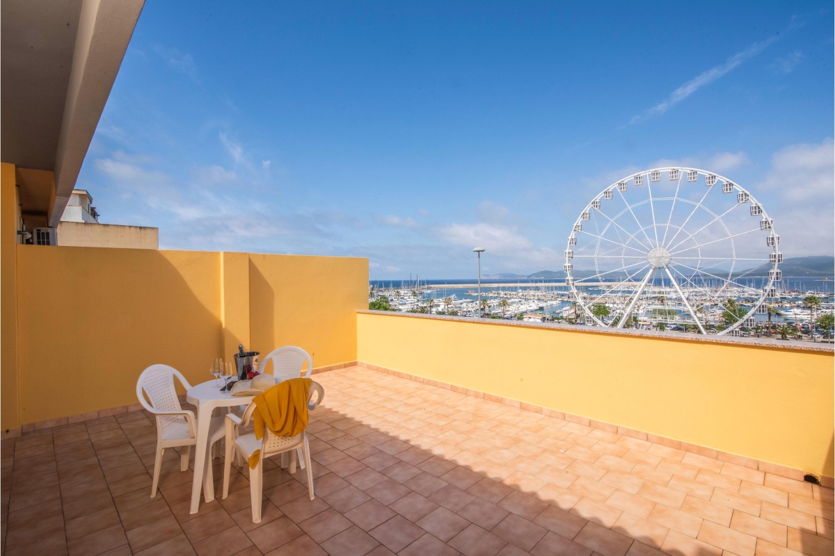 This 5th-floor penthouse (with lift) is just a few metres from Alghero’s lively port and fascinating historical heart. This airy modern apartment sleeps up to 4 guests. Guests can enjoy the sunny terrace with views across the bay to Capo Galera beyond. It is an ideal holiday base from which to explore this region of Sardinia with its vibrant city life and gorgeous beaches.