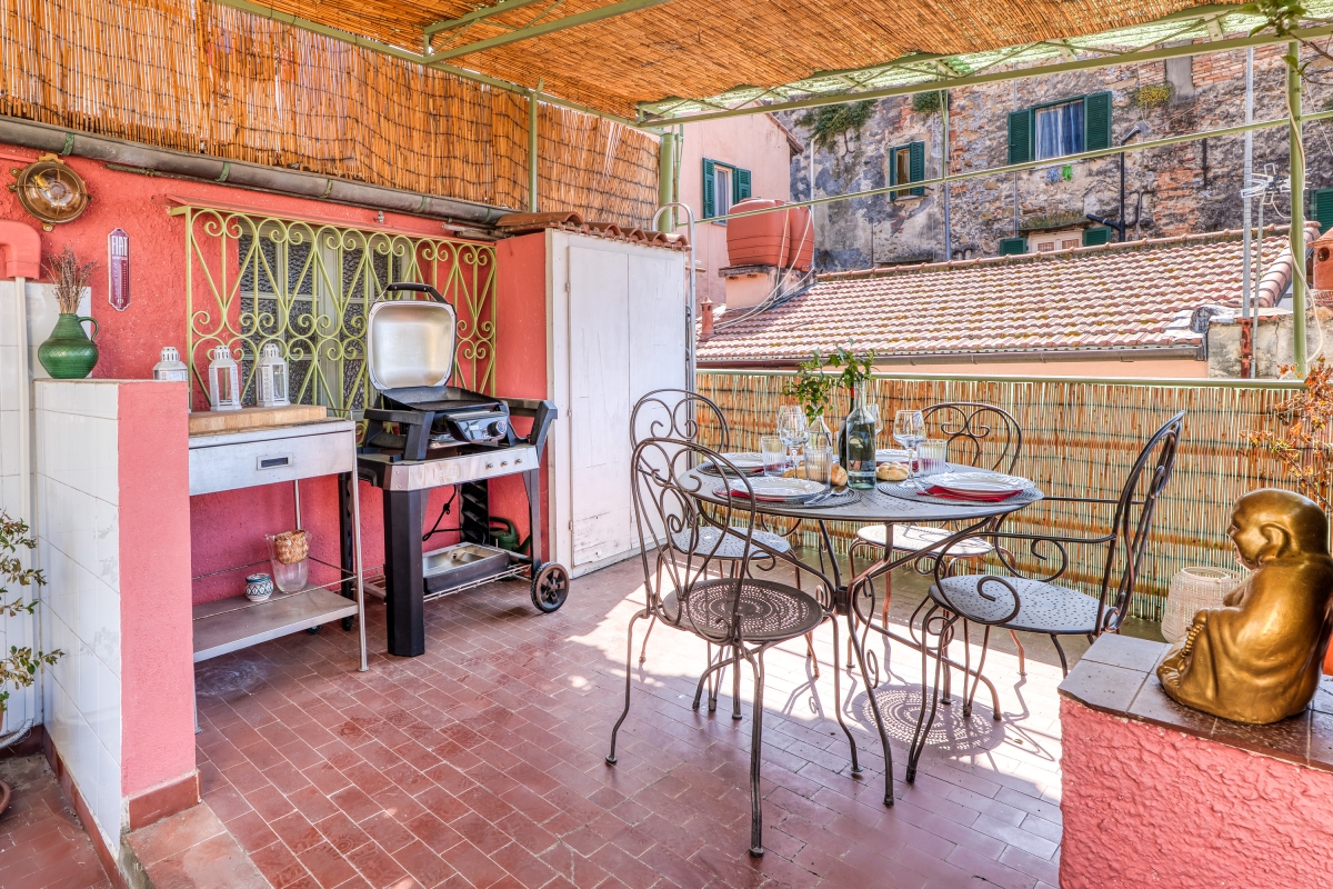 The property boasts a sunny terrace with panoramic views of the rooftops and the sea. Here, guests can enjoy aperitifs and meals cooked on the barbecue or simply relax in the sun.