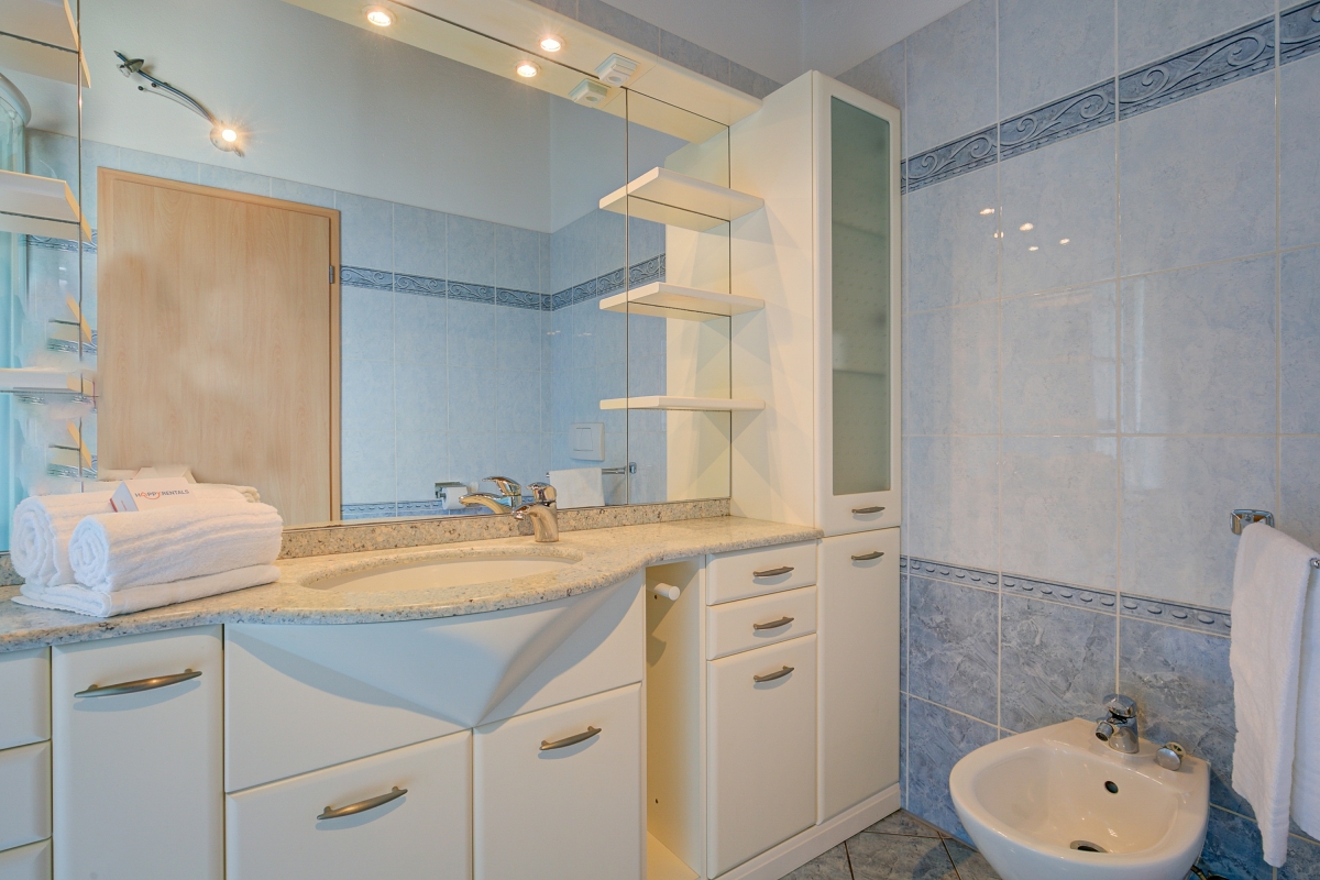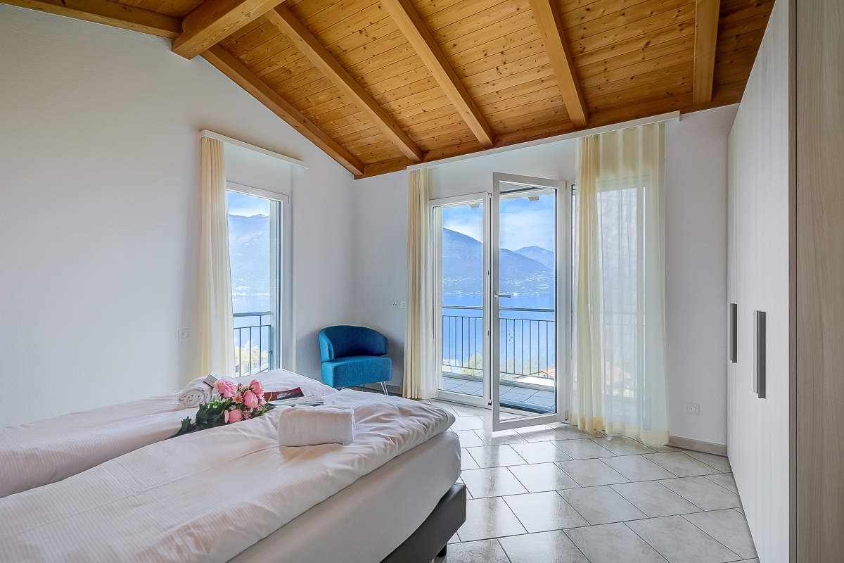 Upstairs, the sleeping area welcomes you with a twin bedroom (lake view), a spacious bathroom with a shower and bathtub, a bidet, and access to a balcony. Completing the upper floor is a serene double bedroom with lake views and a generous wardrobe.