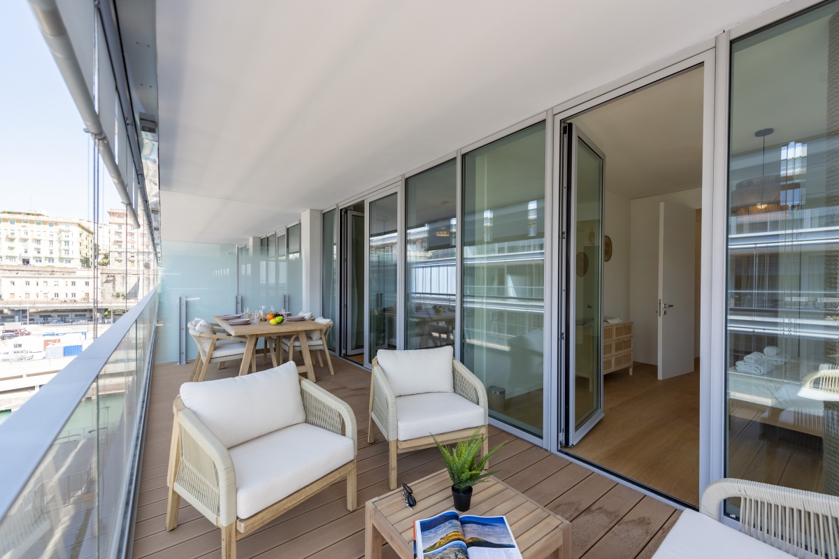 Relax in this stylish, contemporary apartment in a modern development right on the waterfront in eastern Genoa. This 4th-floor apartment (with lift) accommodating up to 4 guests is next to the Fiera di Genova exhibition centre, so is ideal for anyone coming to the venue on business. With easy access to the city’s historic heart and lovely beaches, it makes a convenient base for work or pleasure.