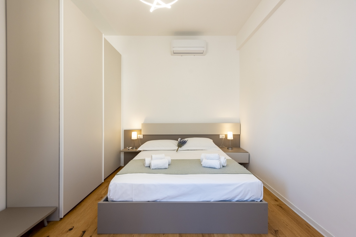 Bedroom: The master bedroom is furnished with a double bed and a wardrobe.