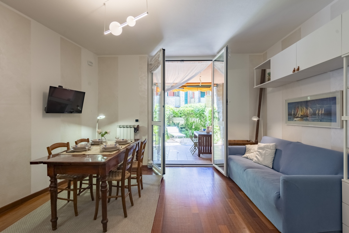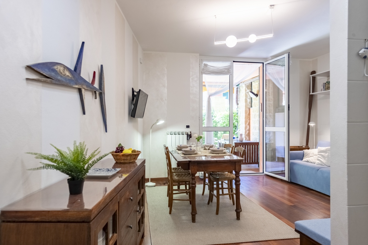 With its own private, furnished garden, the apartment invites you to enjoy peaceful outdoor meals or unwind under the Ligurian sun. Inside, you’ll find a cosy living area with a sofa, dining table and direct access to the private garden. The kitchen features a coffee machine, dishwasher, electric kettle, microwave, cooker hob, and fridge. Guests can enjoy free Wi-Fi throughout the property.
