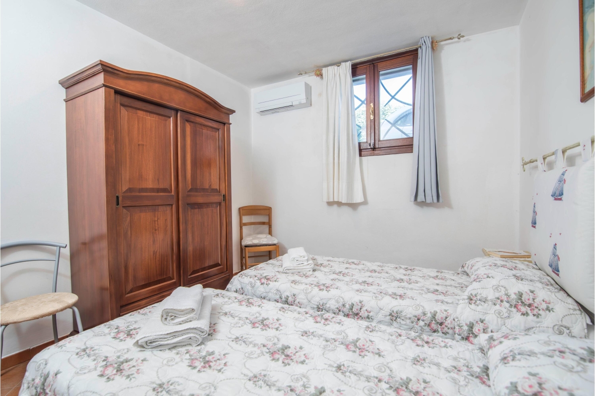 Bedroom 2: Features two single beds, a wardrobe, and air conditioning.
