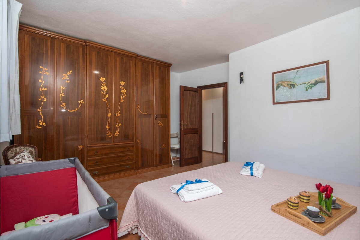 Bedroom 1: Features a double bed, wardrobe, and air conditioning.